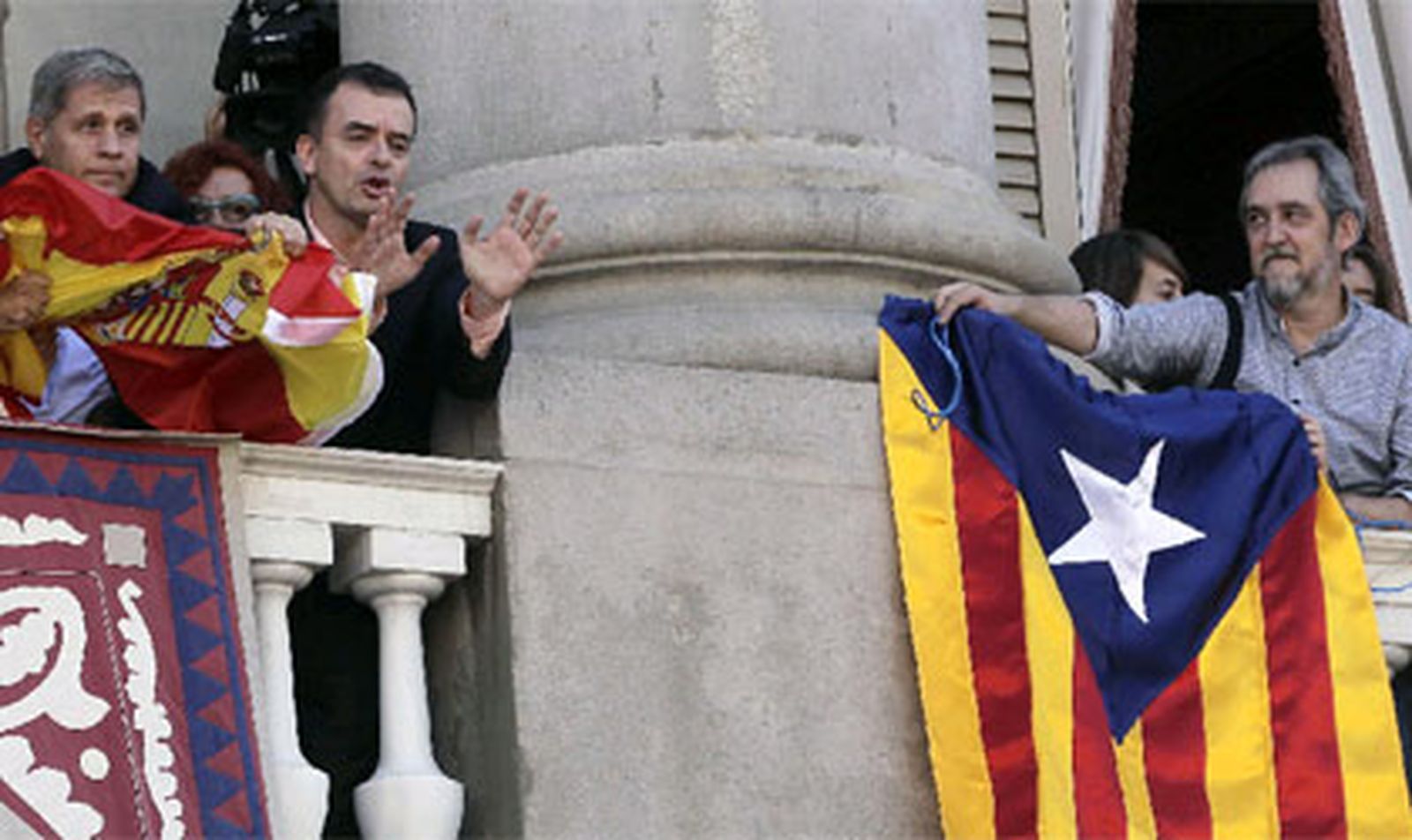 Los hechos ocurrieron en el mediodía del martes, coincidiendo con el día de la Mercè, patrona de la capital catalana, cuando la alcaldesa de Barcelona, Ada Colau, los concejales del consistorio y el presidente de la Generalitat, Artur Mas, salieron al balcón para presenciar los festejos tradicionales de la ciudad en la plaza Sant Jaume. En ese momento, el concejal de ERC en el Ayuntamiento de Barcelona, Jordi Coronas, colgó una bandera independentista del balcón, con la colaboración del presidente del grupo municipal de ERC, Alfred Bosch.