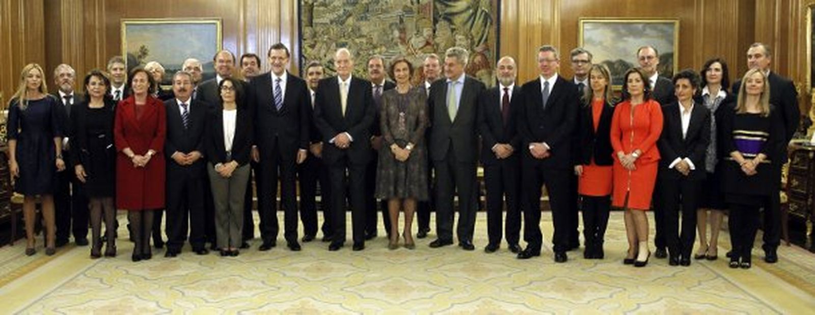 No obstante, al finalizar el acto se ha fotografiado sin apoyos con los nuevos vocales, doce de los cuales han jurado su cargo, mientras que el resto ha utilizado la fórmula de la promesa ante una Biblia abierta por el libro de los Jueces y una Constitución que mostraba el artículo 122, relativo al Poder Judicial. Todos los asistentes han permanecido sentados por deferencia al Rey con excepción del ministro de Justicia, Alberto Ruiz-Gallardón, que ha permanecido de pie representando funciones de Notario Mayor del Reino.