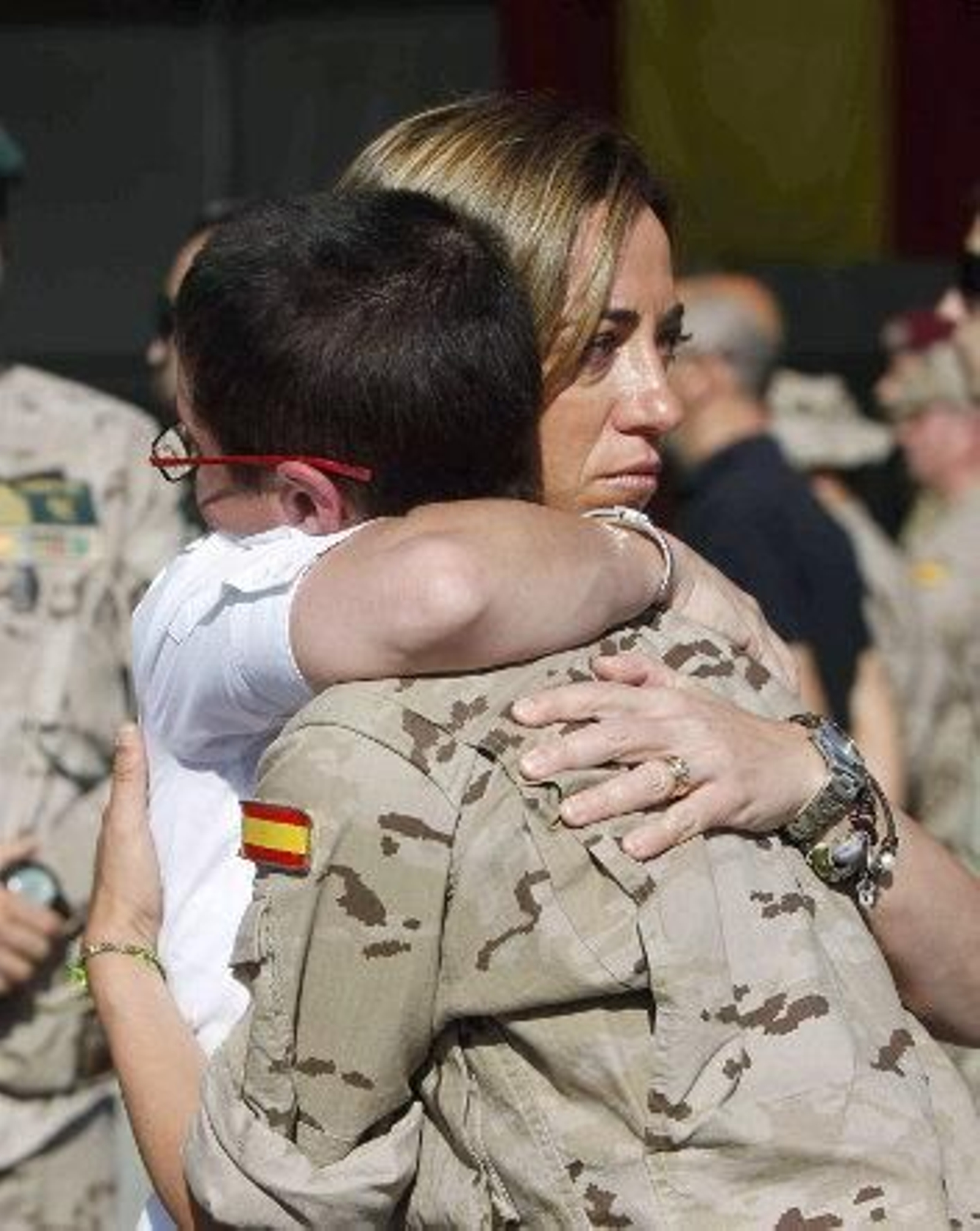 Ante el contingente español, Chacón insistió en que es consciente de que "corren riesgos a diario" y recalcó que lo hacen "por la seguridad de todos los españoles". El sargento y la soldado, dijeron, "han fallecido en nombre de España por la seguridad de todos, cumpliendo muy noblemente con su deber".