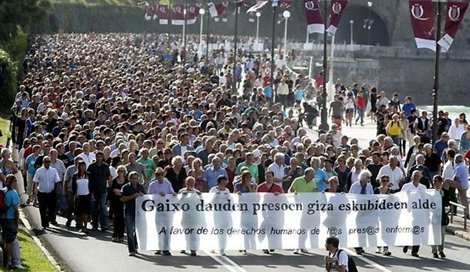 La manifestación, en la que han participado responsables institucionales como el diputado general de Gipuzkoa, Martín Garitano, varios miembros de su gabinete y el alcalde donostiarra, Juan Karlos Izagirre, ha partido desde el túnel del barrio donostiarra de El Antiguo y ha recorrido todo el paseo de la bahía de La Concha hasta llegar al centro de la ciudad. Los participantes, entre los que también se encontraban los diputados de Amaiur Maite Aristegi y Xabier Mikel Errekondo, así como el miembro de Ezker Anitza Mikel Eizagirre y el abogado Iñigo Iruin, han realizado en silencio el recorrido que ha concluido en el Boulevard donostiarra, donde la comitiva ha sido recibida al son de la txalaparta.