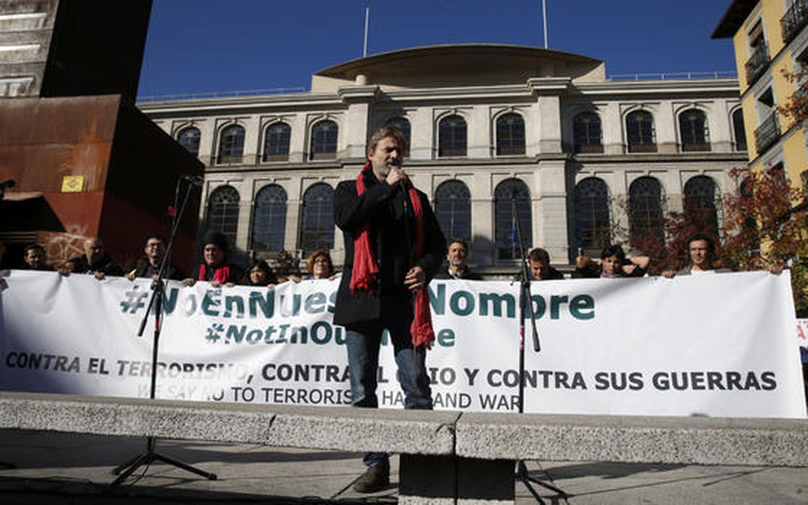 San Juan ha defendido la iniciativa como un impulso ciudadano hacia la dignidad de todos y también en contra de la militarización de España, un país, ha dicho también, cuya población es contraria a la guerra pero desde cuyo suelo partirán tropas para una eventual intervención. El actor se refería a bases militares estadounidenses en nuestro país como las de Rota y Morón. "El peor error sería sobre-actuar en caliente", ha señalado por su parte Mauricio Valiente, concejal de Ahora Madrid, quien ha expresado su rechazo al terrorismo pero también a las bombas y la violencia como medio de combatirlo. "Son demasiadas las veces que en nuestro nombre se hacen cosas que no nos gustan", ha añadido el alcalde gaditano: "Por eso decimos 'no en nuestro nombre', la guerra no es la solución".