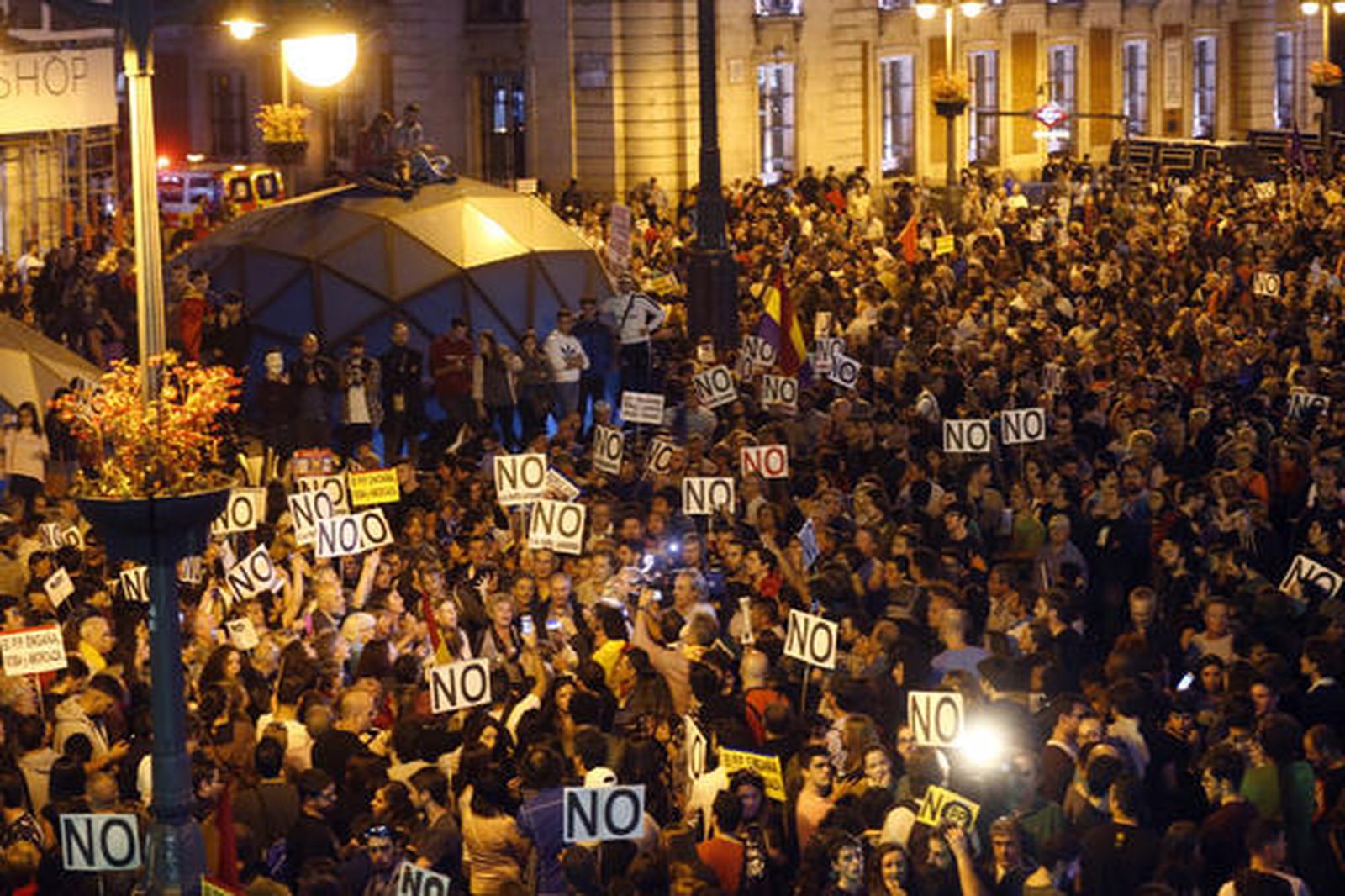 Poco después de las seis de la tarde la cabecera de la marcha con el lema "Ante el golpe de la mafia, democracia" y gritos de "Que no, que no que no nos representan", "Vergüenza me daría ser Susana Díaz" o "PSOE-PP, la misma mierda es", los asistentes iniciaban su recorrido desde la madrileña plaza de Neptuno a la Puerta del Sol.