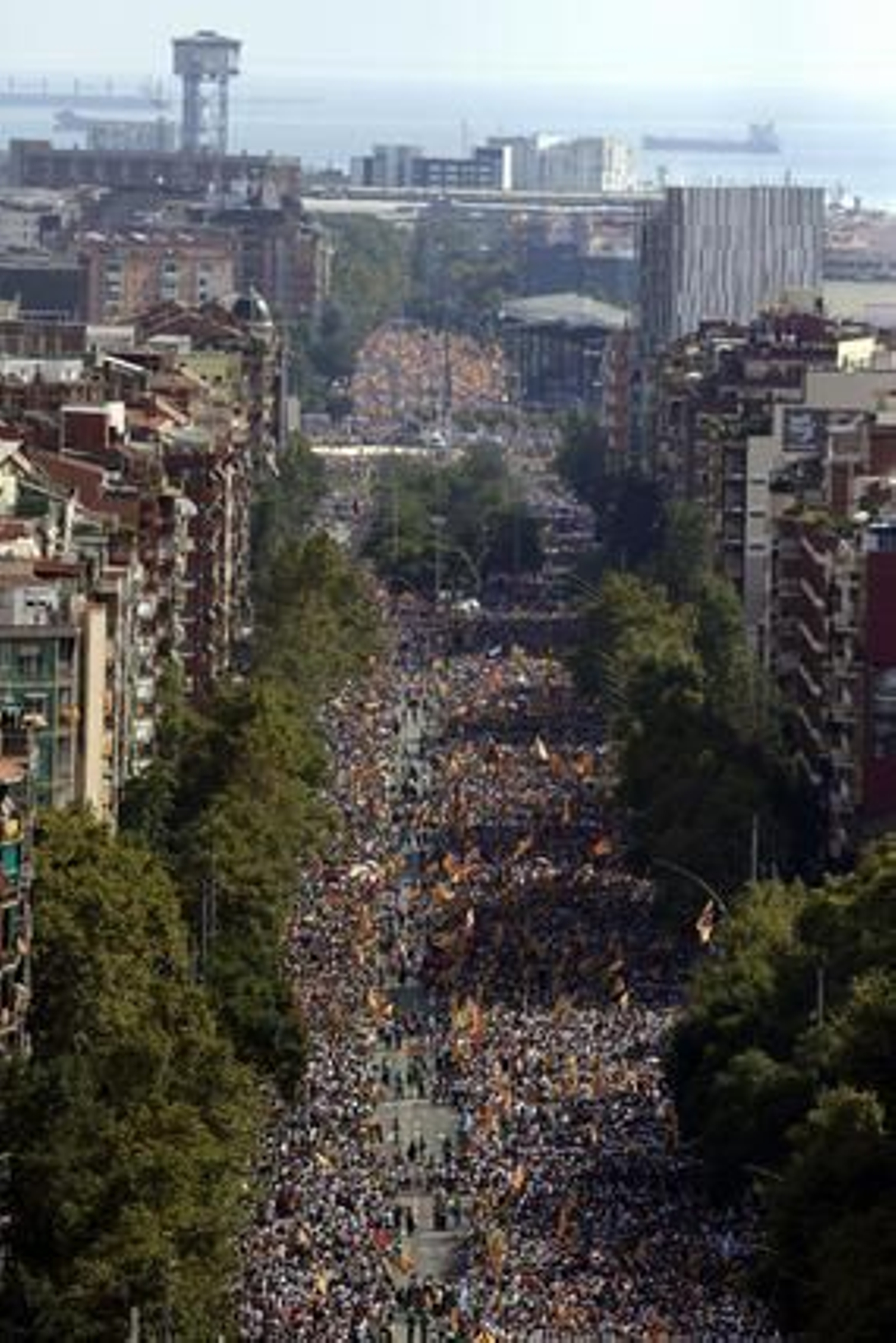 Cataluña ha vivido una Diada marcada por el inicio de la campaña electoral del 27-S, polarizada por los partidos favorables y contrarios al proceso soberanista, y por una multitudinaria marcha independentista que ha recorrido la avenida Meridiana de Barcelona. La celebración de la Diada ha sido criticada por el Gobierno por su utilización partidista por parte de las fuerzas que defienden la independencia, que han reunido en las calles de Barcelona a centenares de miles de personas -1,4 millones según la Guardia Urbana y entre 520.000 y 550.000 según la Delegación del Gobierno- en la llamada Vía Libre a la República Catalana.