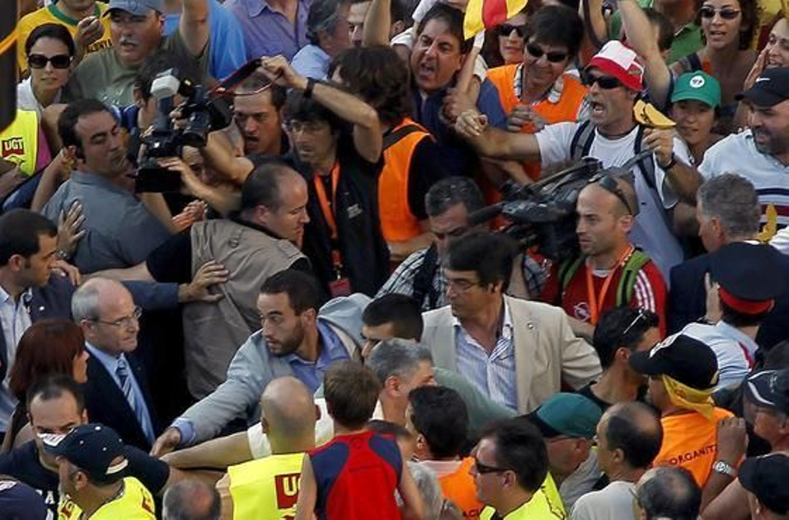 Sólo se ha podido apreciar, además del incidente de Montilla, como un manifestante y el secretario general de CiU, Josep Antoni Duran Lleida, se han encarado unos segundos, sin más consecuencias.