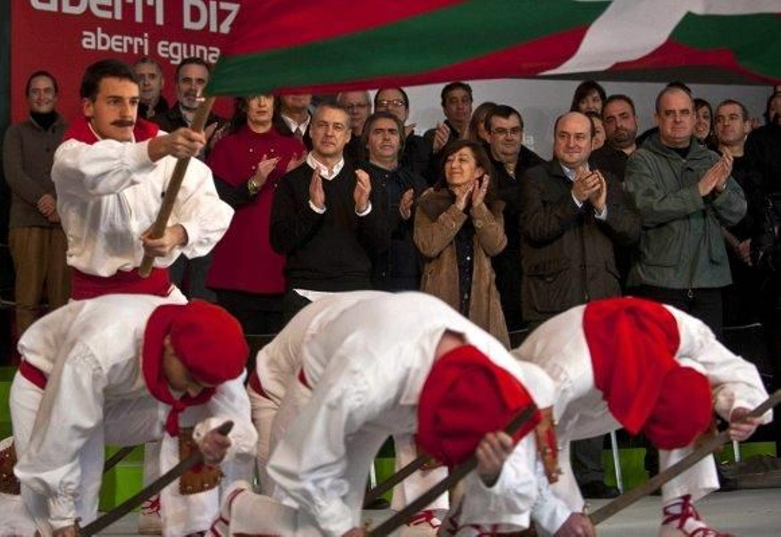 El líder del PNV ha resaltado que el "primer reto" de su partido para el futuro es la "recuperación" del Gobierno Vasco, bajo el liderazgo de un lehendakari "que piense y que esté en Euskadi" y "celebre el día de su patria, el Aberri Eguna". "No un lehendakari López que va de campaña en campaña, que es el primero solo en eso, en empezar la campaña electoral. Buscando el aplauso de España en lugar del compromiso con Euskadi", ha añadido Urkullu. Ha empleado un símil para transmitir que, mientras el PNV es "el motor de Euskadi", el "coche" de Patxi López y Antonio Basagoiti -presidente del PP del País Vasco, que apoya al Ejecutivo del PSE- "va marcha atrás" y el de la izquierda abertzale "no se mueve porque ni saben dónde está el volante". Urkullu ha recordado que su partido trabaja "por un nuevo Estatus Político" para Euskadi, "desde la bilateralidad, con España y también con Europa" y "desde el reconocimiento internacional", para llegar a una "Euskadi, Nación Europea".