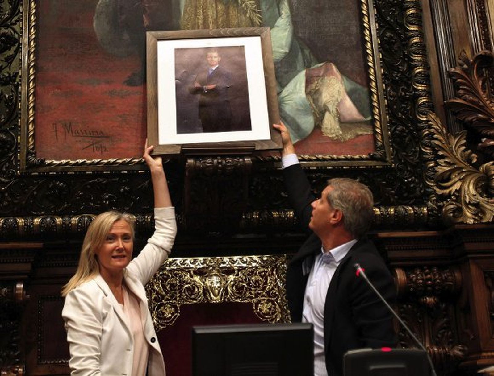Tras ella ha intervenido el popular Alberto Fernández, que ha aceptado la propuesta y ha denunciado que en el pleno se estaba "incumpliendo la legalidad" por la ausencia del retrato del jefe del Estado y que el gobierno municipal no podía alegar que no se disponía de él porque el PP le ha entregado uno para que la irregularidad "pueda ser subsanada". La intervención de la alcaldesa ha provocado las quejas de los presidentes de los grupos de CiU y C's, Xavier Trias y Carina Mejías, respectivamente.