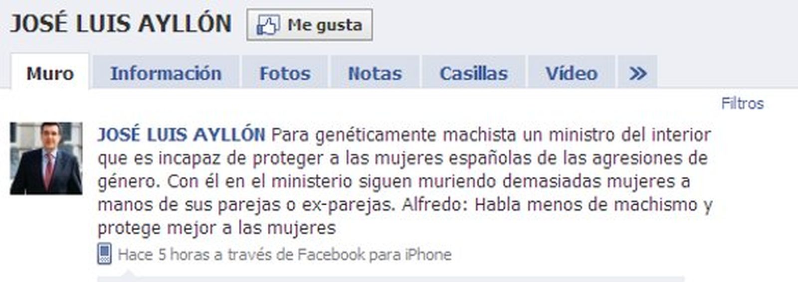 "Con él en el Ministerio del Interior siguen muriendo demasiadas mujeres a manos de sus parejas o ex parejas", ha escrito en su Facebook el secretario general del partido en el Congreso.