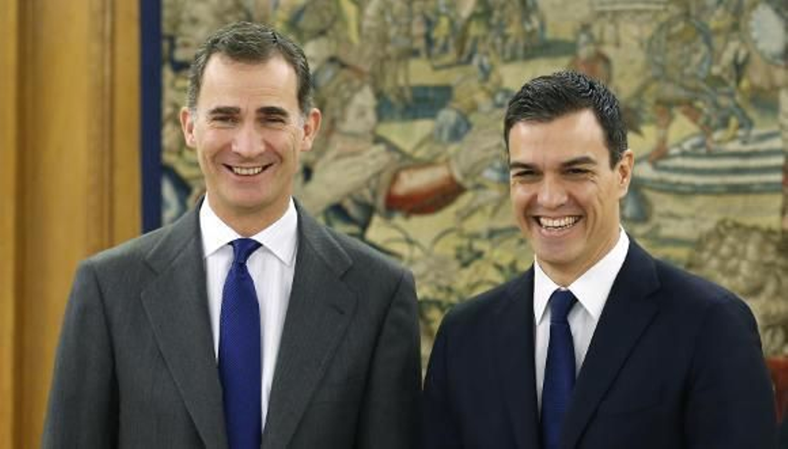 Pedro Sánchez, ha asegurado que "agradece" la oferta de gobierno que le ha hecho el líder de Podemos, Pablo Iglesias, pero ha insistido en pedirle un respeto "escrupuloso" a los tiempos y procedimientos democráticos, según los cuales corresponde a Rajoy intentar formar gobierno. El líder del PSOE ha bromeado al explicar la sorpresa que le ha causado salir de Zarzuela y comprobar que tenía ya "todos los ministros nombrados". "El Rey me ha informado de la propuesta de Iglesias. Entré en Zarzuela sin un gobierno y parece que tengo ya todos los ministros nombrados", ha dicho.