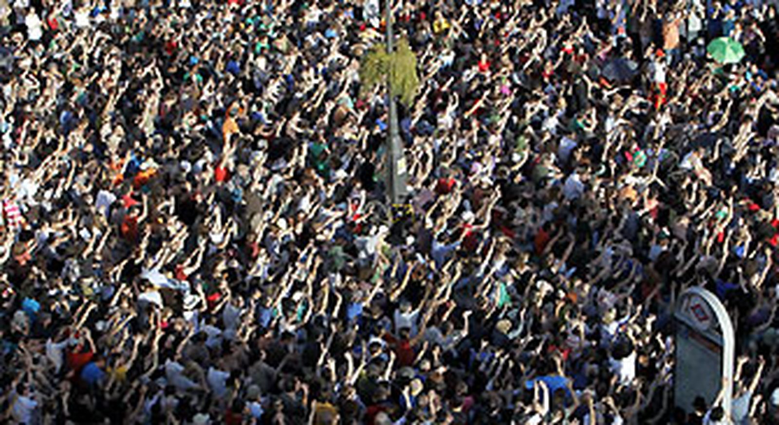 Pasadas las 18:30, más de dos mil personas se congregaban en el kilómetro cero de la capital, el emblema de este movimiento, para participar en este acto, al que se han ido sumando poco después más personas que han cantado el "cumpleaños feliz" al unísono en un acto en el que no han dejado de escucharse lemas como "Esta crisis no la pagamos" o "Que no, que no nos representan". Jóvenes, mayores y niños han hecho sonar cacerolas, llaveros y otros objetos como forma de alzar su voz contra la crisis, los mercados financieros, las políticas de austeridad y los recortes.