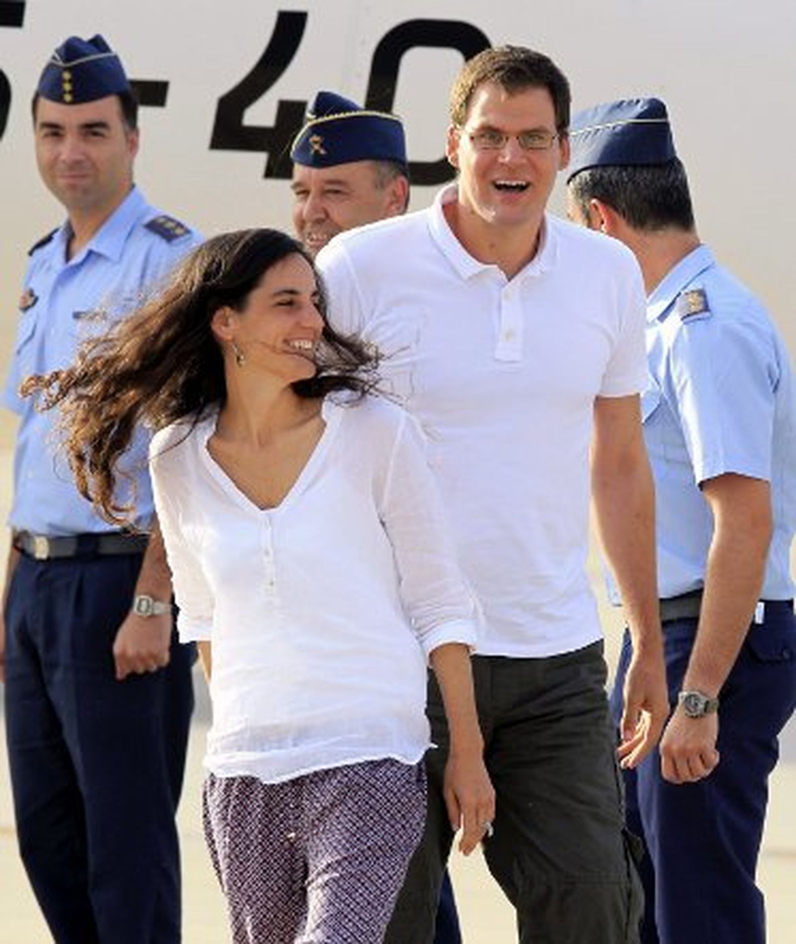 Junto a Sáenz de Santamaría, que ya pudo conversar por teléfono en la mañana del jueves con Gonyalons y Fernández de Rincón una vez que estuvieron a salvo, ha acudido a Torrejón el secretario de Estado de Asuntos Exteriores, Gonzalo de Benito. El avión Falcon enviado desde España para transportar a los liberados partió de vuelta sobre las 16:00 desde una base militar de Uagadugu, la capital voltense, desde donde la italiana Rossella Urru, compañera de cautiverio, tomó otro vuelo hacia Roma.