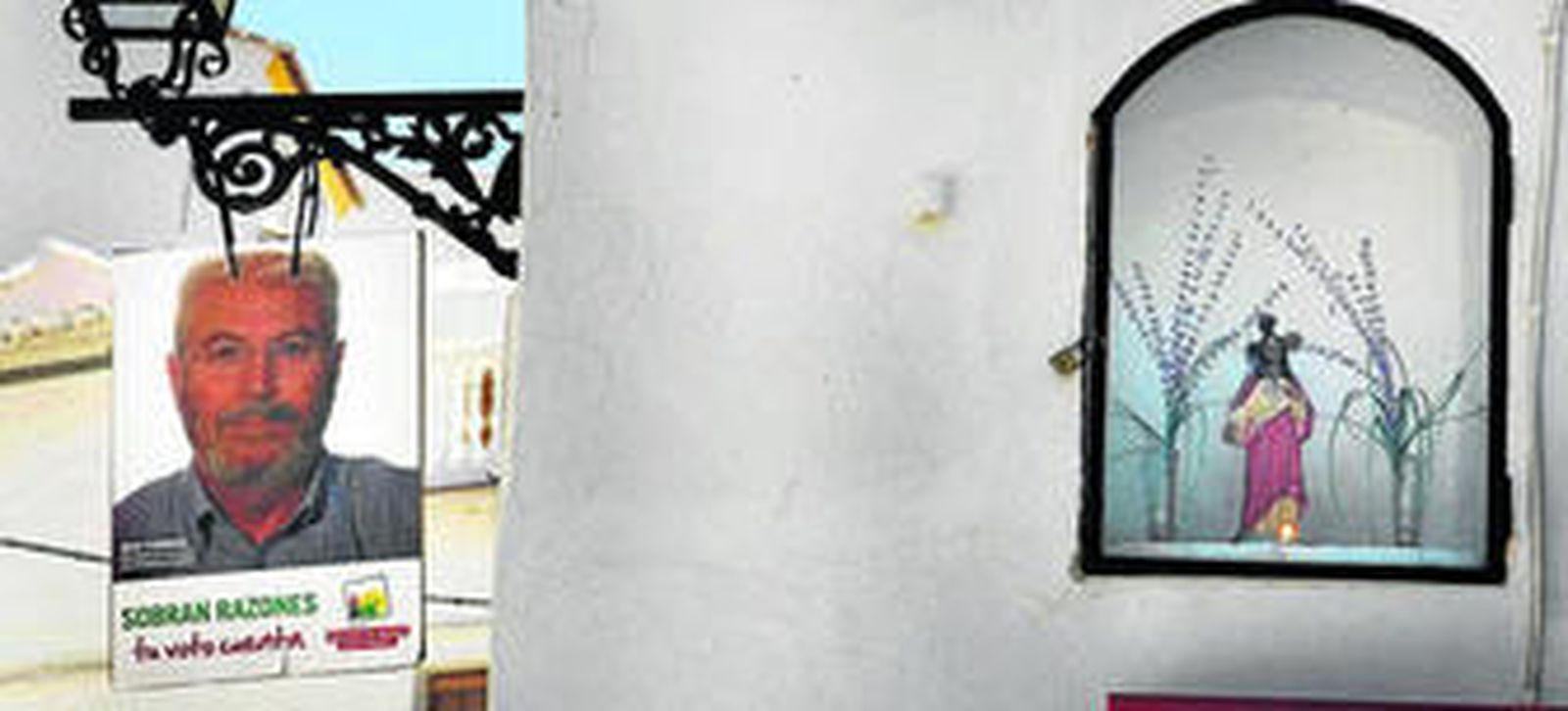 El cartel que anuncia un debate electoral en la puerta del Ayuntamiento entre los candidatos de 2011 muestra que este año Calderón se va a encontrar muy solo. Ni Ortiz ni Pendón se presentan. "Paco, el concejal falangista, está ya un poco cansado de la vida municipal y, como él no se presenta, pues no se presenta Falange. Además, creo que está trabajando en un libro. Salvador va en las listas, pero creo que quiere dedicarse más a Diputación".