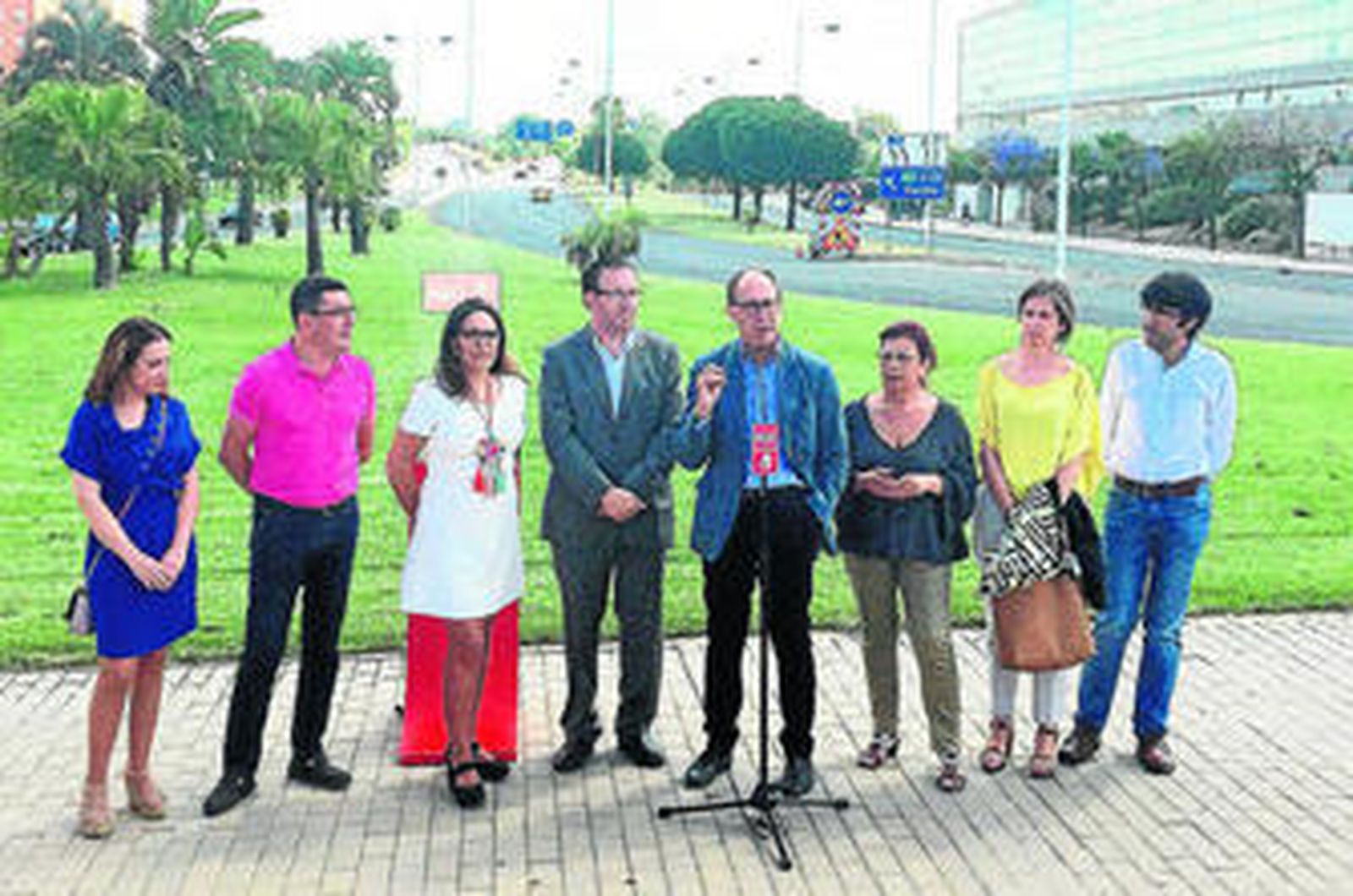 Hasta la entrada de Huelva por la A-49 se desplazaron los primeros, en concreto los candidatos al Congreso de los Diputados y al Senado, José Juan Díaz Trillo y Manuel Guerra. Allí prometieron priorizar las infraestructuras después de "cuatro años y medio en blanco del PP", en referencia sobre todo a la "recuperación" de la línea ferroviaria Huelva-Zafra y al desdoble de la N-435.