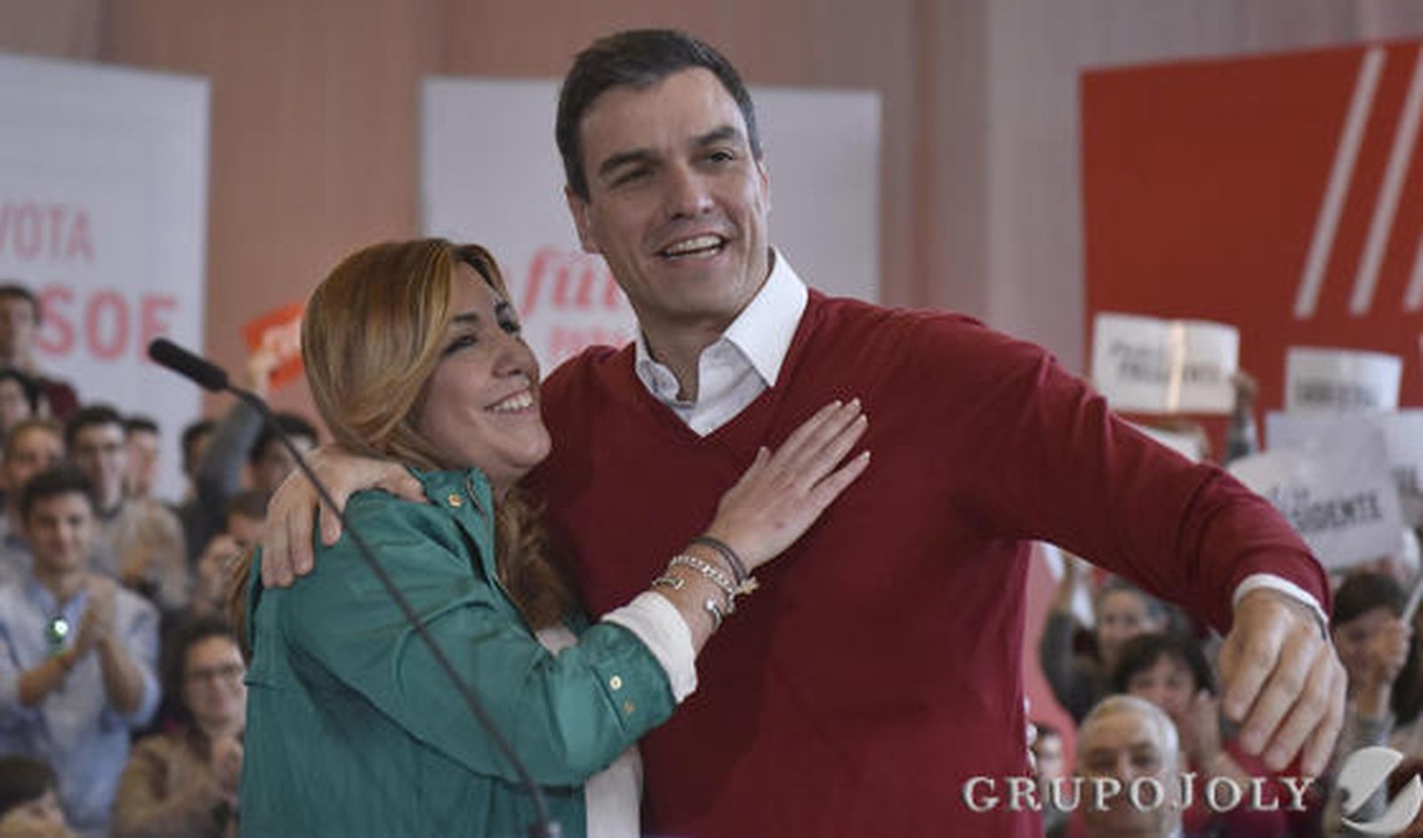 El secretario general del PSOE, Pedro Sánchez, y la presidenta de la Junta, Susana Díaz, se han conjurado este sábado para que el PSOE, con "el pulso firme del socialismo andaluz", logre la victoria el 20 de diciembre aglutinando el voto progresista frente al "postureo" de Podemos.