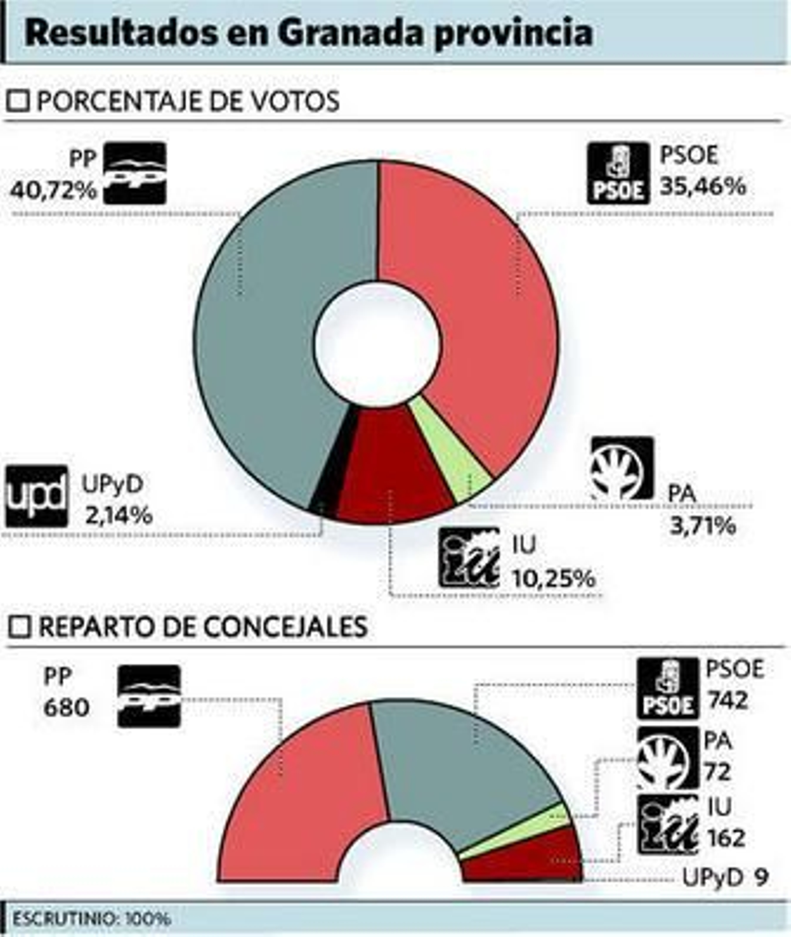 Sebastián Pérez ha conseguido su objetivo, largamente perseguido los últimos cuatro años. El PP ha arrebatado el gobierno de la Diputación Provincial a Martínez Caler -que, lideraba la institución provincial de manos de IU, que sumaba sus dos diputados al equipo de gobierno. Ya desde que estaba bien avanzado el escrutinio se podía adivinar lo que se confirmó con el 100% de los votos escrutados, que el PP iba a obtener14 diputados, el PSOE 11 e IU revalidaría sus dos. Los populares han arrebatado nada más y nada menos que dos diputados, uno procedente del partido judicial de Loja y otra del Cinturón en unos resultados históricos para el PP en ambas comarcas.