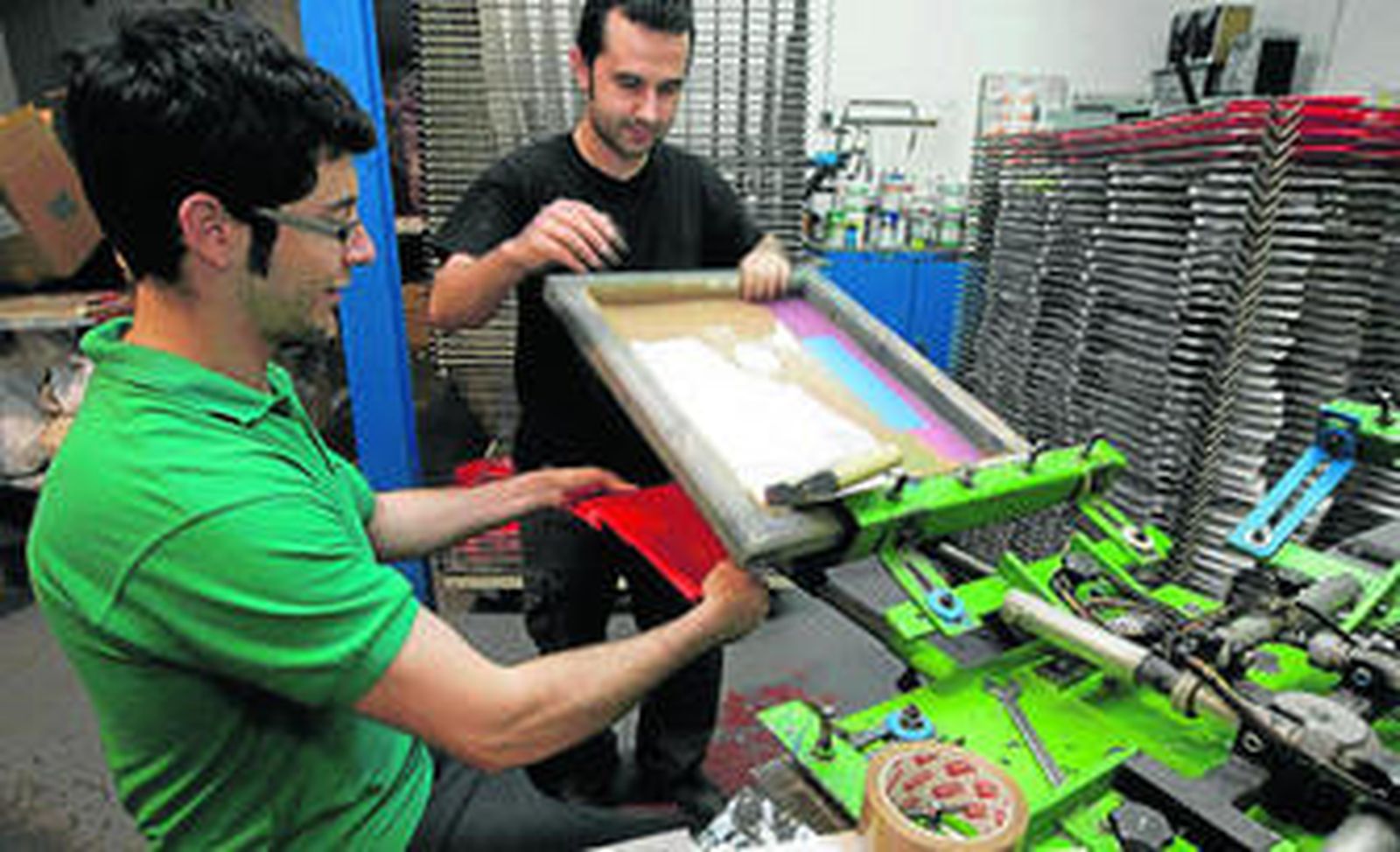 En los talleres de Publifiestas Conde trabajan esta semana a destajo, en turnos de mañana y noche, "porque las impresiones tienen que estar listas antes del fin de semana y hay algunos partidos políticos de pequeños municipios de la provincia a los que casi les ha pillado el toro para hacer los encargos" esperando a ver si finalmente tenían presupuesto para poder encargar al menos unas míseras bolsas de globos o pegatinas.