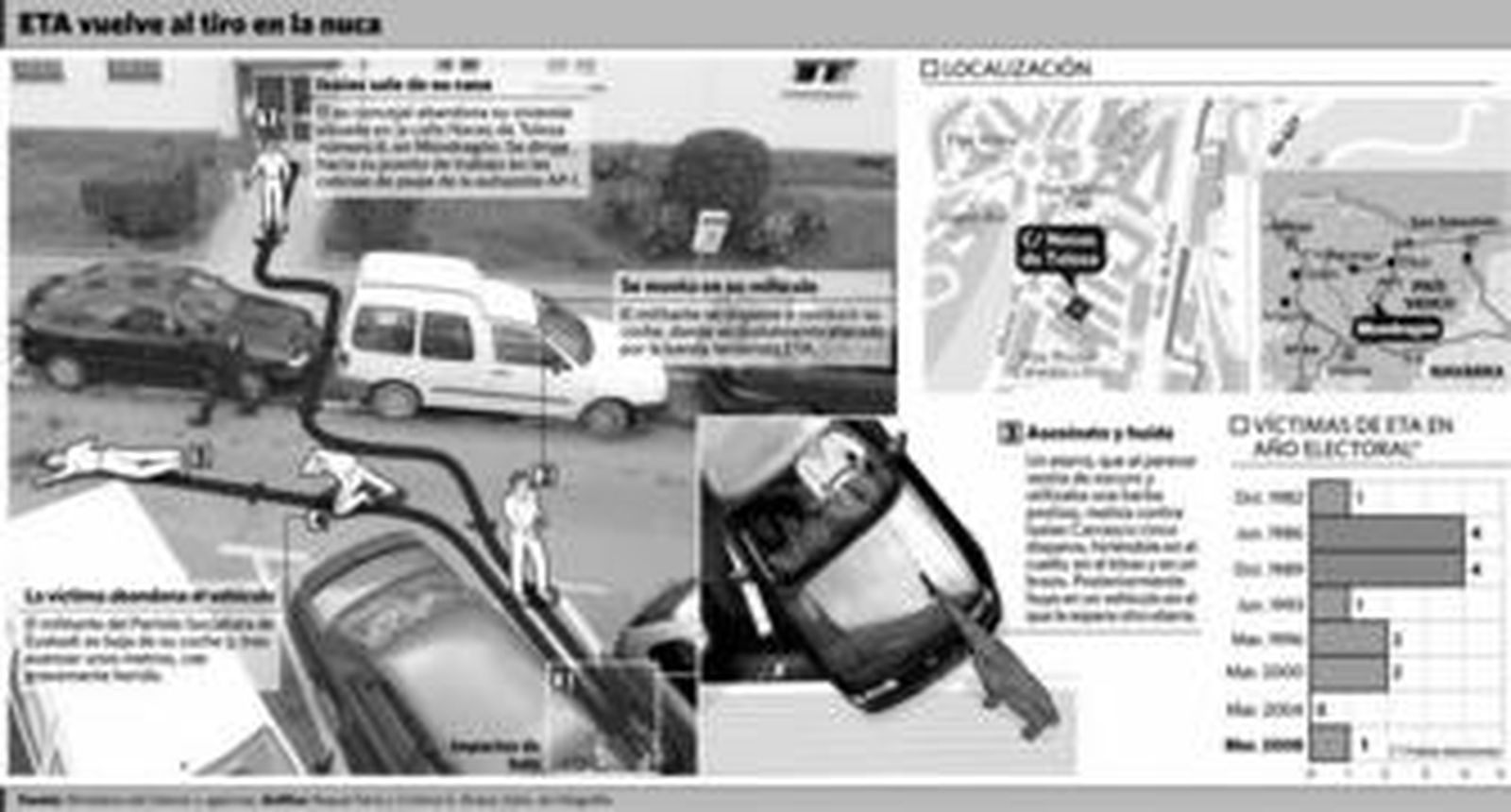 "¡Le han matado, que me lo han matado!", gritó la esposa de Isaías Carrasco, según relatan testigos presenciales, cuando el ex concejal socialista fue tiroteado por ETA en Mondragón.