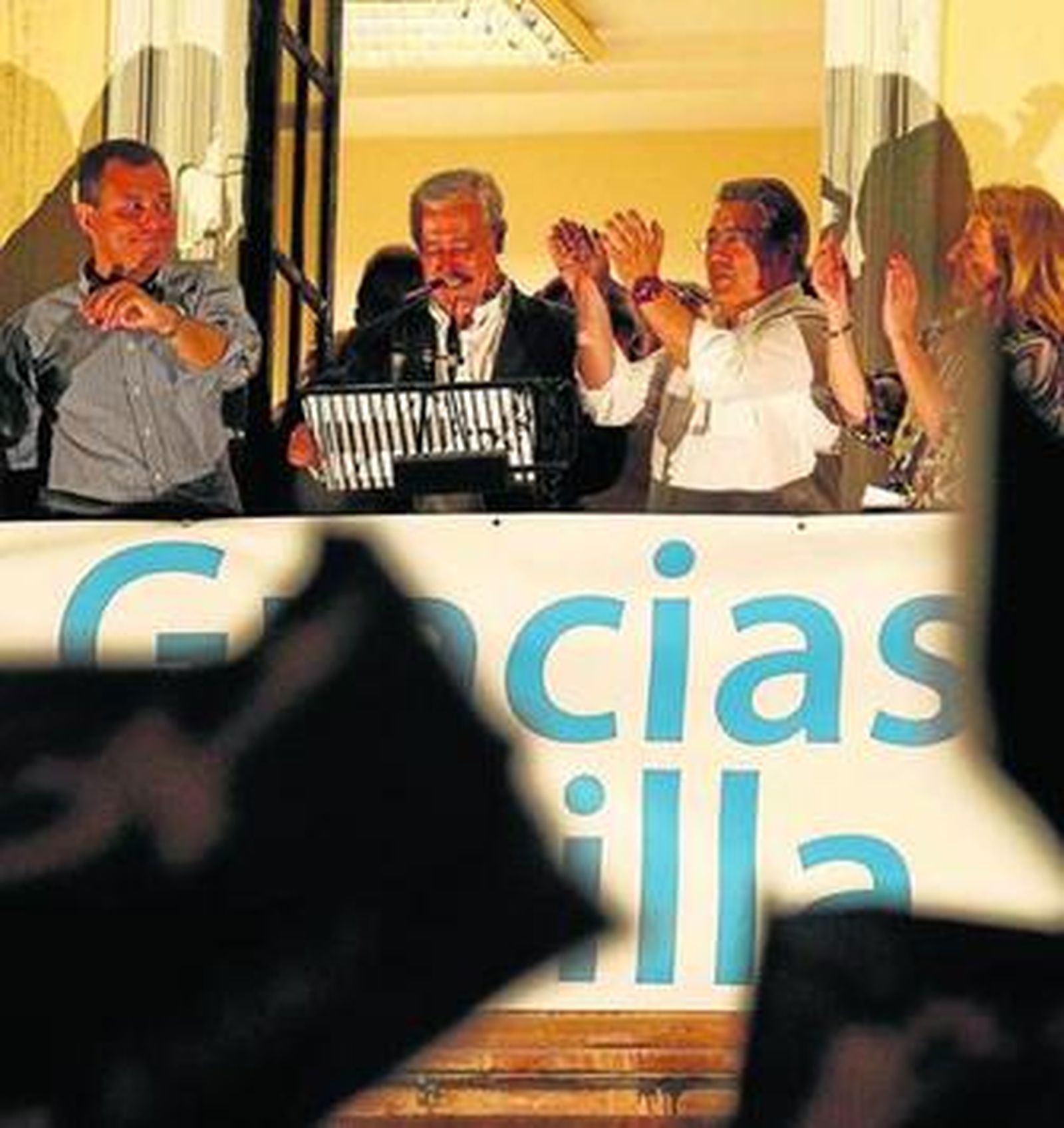 Ganaron por goleada, pero perdieron la porra. Evelia Rincón pronosticó 18 concejales. Alicia Martínez, 19. "Yo sí hablé de veinte", dice Beatriz Alcázar. Fernandito, socio pequeño del próximo alcalde de Sevilla, aplaudía a rabiar a su padre desde los hombros de un estibador de emociones.