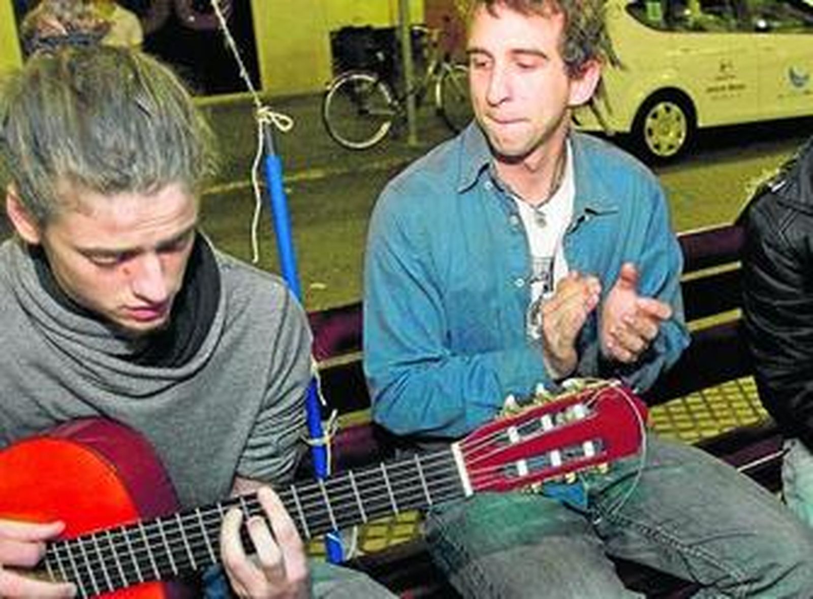 A las 1:00 horas parece que ya está todo listo y unas 70 personas empiezan a ocupar su lugar. A pesar de la hora, de momento casi nadie intenta dormir. Cada uno elige su opción para pasar el rato. Una guitarra, una baraja de cartas, un libro, un ordenador portátil para aprovechar el wi-fi público del Palillero o un simple debate. El sueño no aparece y tienen que matar el tiempo. Lo que sí recuerdan es que se baje el ruido para no molestar a los vecinos, de los que dicen que están teniendo "una actitud ejemplar".