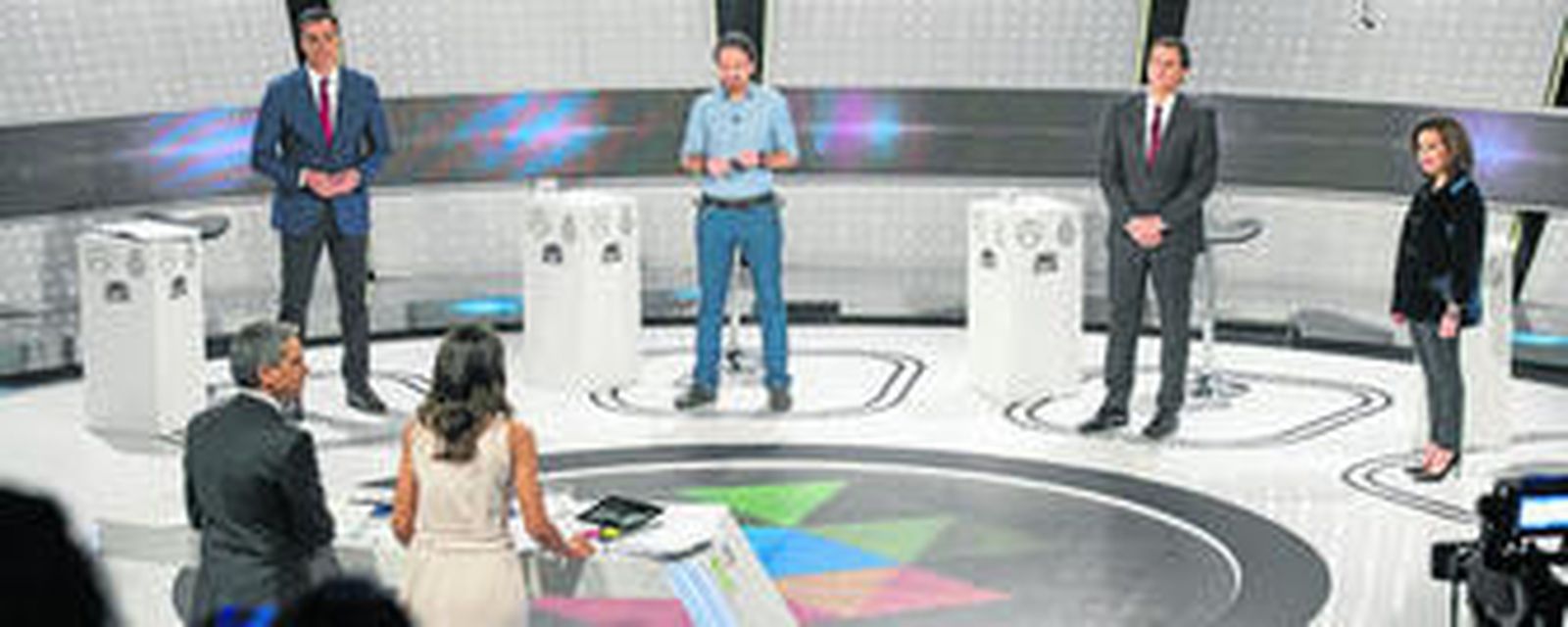 De programa (electoral), más bien poco, como siempre. De programa televisivo, bastante, pero sin ser tan decisivo como su pomposo nombre. Muchas expresiones en politiqués, altibajos según el tema, con una sobreimpresión que ayudaba a incorporarse a los zapeadores procedentes de los joselitos, pero con una duración excesiva, defecto necesario al tratarse de una conversación a cuatro bandas. Ana Pastor y Vicente Vallés, collera dispuesta como Schwartz y Máximo Pradera en Lo + Plus (el plató recordaba precisamente a aquel programa), se esforzaban en repartir temas, en incidir en preguntas particulares, para permitir que cada candidato tuviera una posición realmente activa, con proposiciones y respuestas. Un fórmato mucho más ágil que todos los cara a cara que hemos visto a lo largo de estos años. Volverá. Y con atriles, por favor.