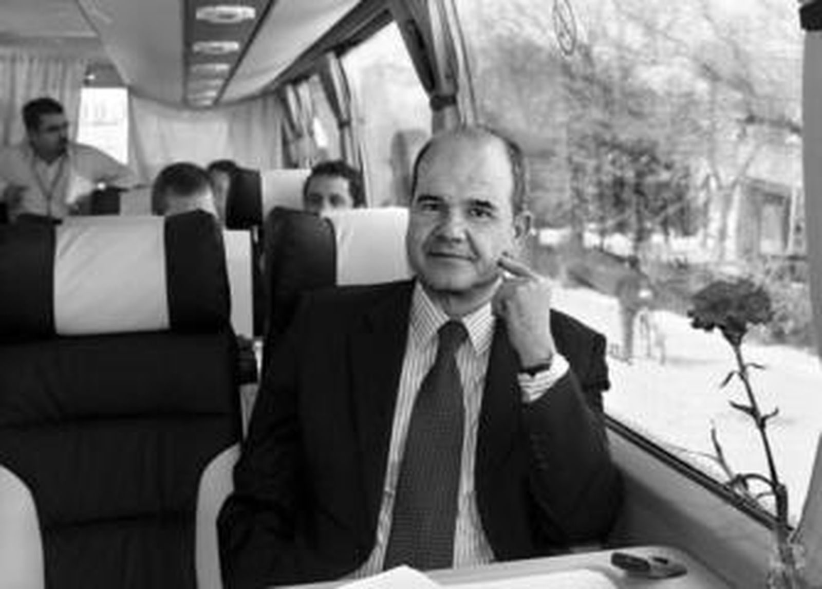 10.45 Libro de cabecera. En el autobús prepara sus intervenciones y lee su libro de cabecera. Está con Los Vulcanos, una historia del denominado "gabinete de guerra de Bush". Intrigas de la Casa Blanca, del Pentágono. Quizás fue esa bibliografía de campaña lo que le llevó a terminar su intervención en el debate con Javier Arenas en Canal Sur con una referencia a la guerra de Iraq. Llegada a la sede del PSOE.