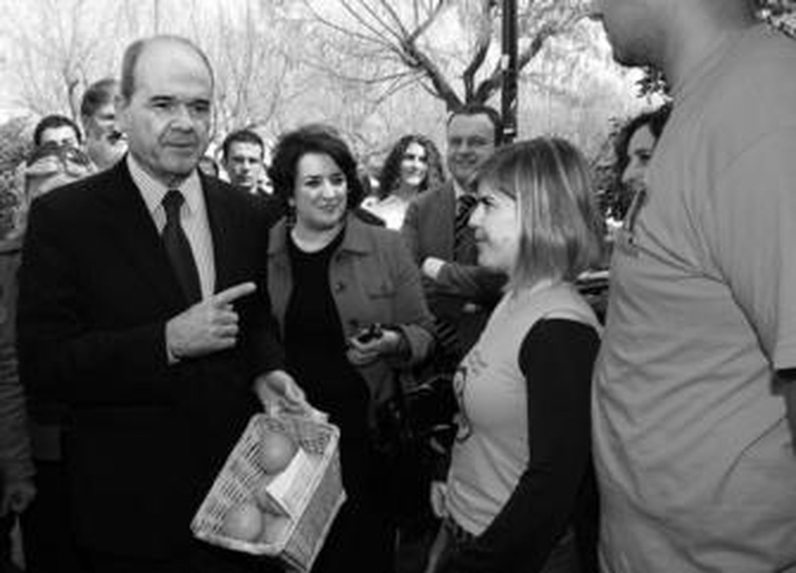 12.50 La quinta del biberón. Llegó a la sede del PSOE en autobús y se va en el coche. El candidato, aspirante a sucederse por sexto mandato consecutivo, está en forma. "En forma física y mental", dice. Un político-río amparado en sagas de votantes. Los que antes del 9 de marzo hayan cumplido 18 años nacieron el año que se presentó por primera vez. Aquella campaña de junio de 1990, triunfo de Camerún sobre Argentina en partido inaugural del Mundial de Italia, en el que Chaves coincidió en el hotel con el escritor Antonio Muñoz Molina, cuya patria chica, Úbeda, visita hoy.