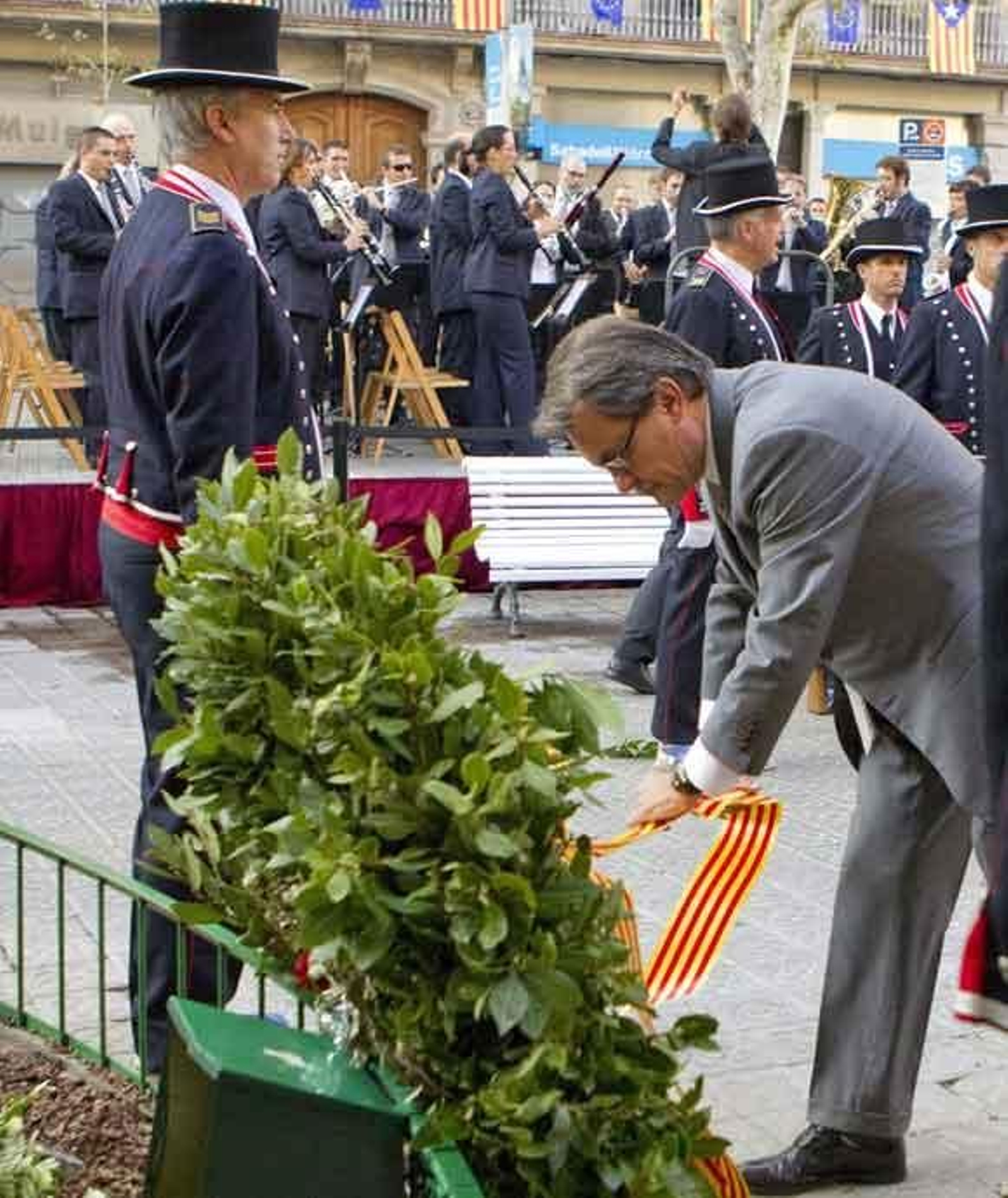 CiU ha instado al presidente del Gobierno, Mariano Rajoy, a "escuchar" el "clamor" de los catalanes en una Diada de Cataluña que será "histórica" tras la manifestación soberanista en Barcelona, actitud en la que el PPC ve "sectarismo" y por ello estudiar retirar sus apoyos al Govern. Las tradicionales ofrendas florales al monumento a Rafael Casanova con motivo de la Diada no han registrado incidentes y las ha abierto el gobierno catalán, encabezado por su presidente, Artur Mas.La celebración ha seguido el formato de los últimos años, con amplias medidas de seguridad y un perímetro que ha situado a los ciudadanos, que acostumbraban en ediciones anteriores a abuchear a algunos políticos, a más de cien metros de distancia del monumento. Como otros años, ni PPC ni Ciutadans han acudido al monumento. En las declaraciones a los medios tras las ofrendas florales, el presidente del grupo de CiU en el Parlamento, Oriol Pujol, ha instado a Rajoy a "escuchar el clamor inequívoco de los catalanes a favor de la libertad del país", en una Diada que será "histórica" y que a su juicio marcará un "punto de inflexión". Pujol ha destacado que en la jornada de este martes, sobre todo con la manifestación convocada para esta tarde en Barcelona bajo el lema "Cataluña, nuevo Estado en Europa", Cataluña "emprenderá claramente el camino hacia la libertad". El presidente del FC Barcelona, Sandro Rosell, y el alcalde de Barcelona, Xavier Trias, han anunciado que se sumarán a la manifestación, protesta que rechazan PPC y Ciutadans mientras que del PSC sólo acudirán algunos dirigentes del ala más catalanista.