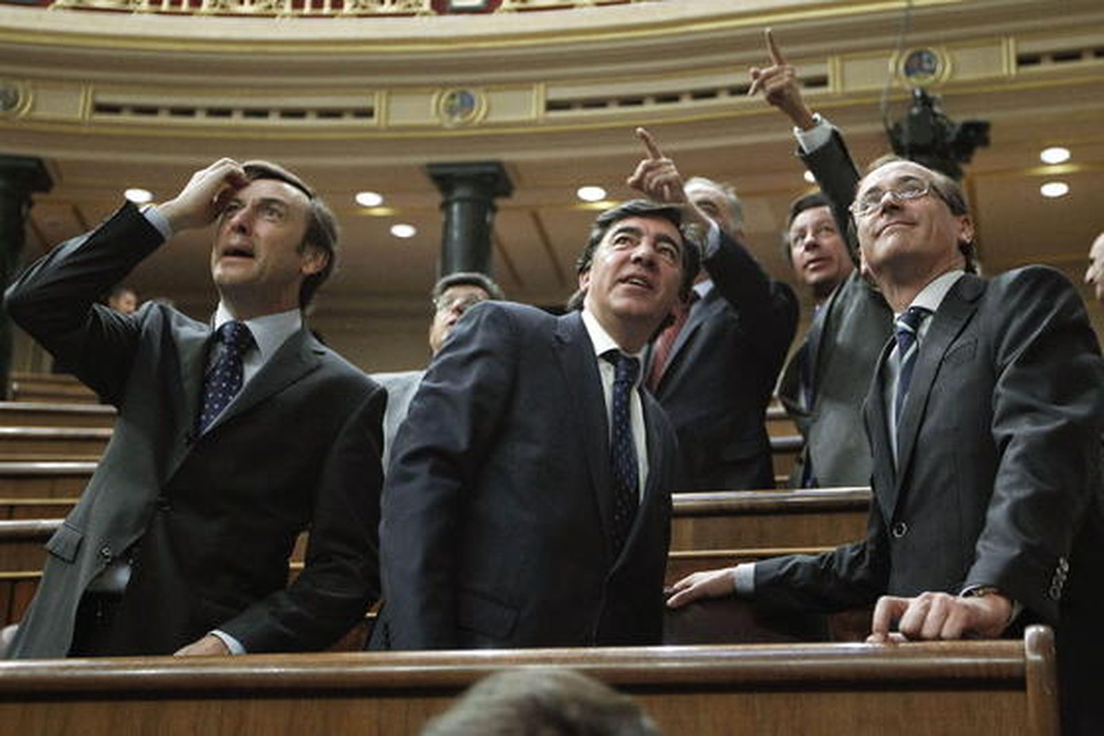 Si es habitual entrar al hemiciclo y mirar hacia el techo para comprobar dónde están los tiros de Tejero, esta vez la mirada de todos se ha desviado para observar la cascada de agua que se filtraba por las molduras y por los conductos de aire acondicionado y los plásticos que ha habido que colocar para impedir que el agua prosiguiera su curso. A la espera de las explicaciones oficiales, la primera conclusión es que las obras que obligaron a cerrar el Congreso durante el verano, que precisamente tenía entre sus objetivos acometer reformas que evitaran las goteras, o no estaban acabadas o no han logrado su objetivo.