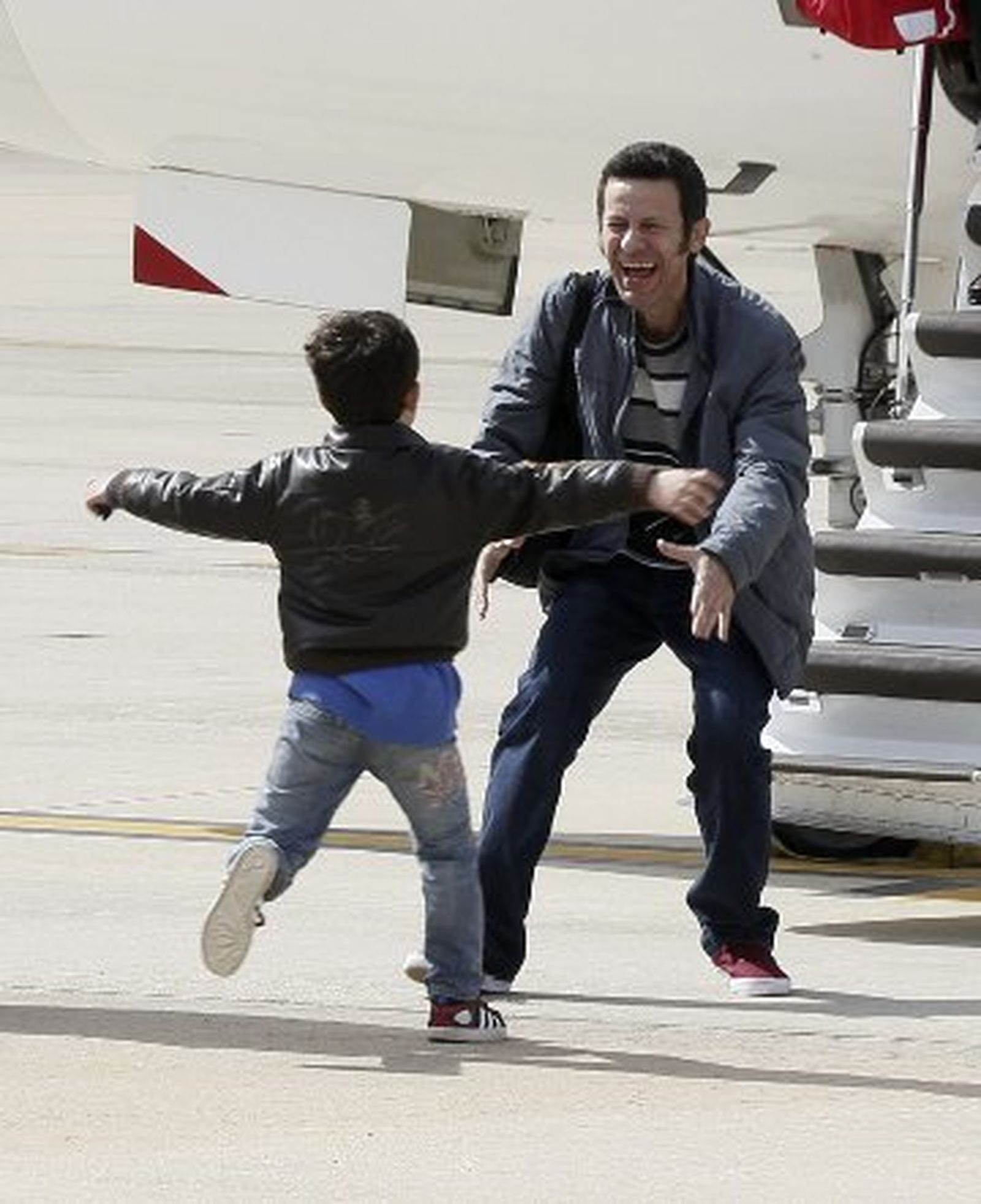 Tanto Javier Espinosa, que ha recibido un espontáneo ramo de flores de sus hijos, recogidas en los jardines de la misma base aérea, como Ricardo García han vuelto a España más delgados y sensiblemente desmejorados, pero no han parado de sonreír a sus familiares y, una vez en El Mundo, a la redacción del mismo, que les ha ovacionado durante varios minutos.
