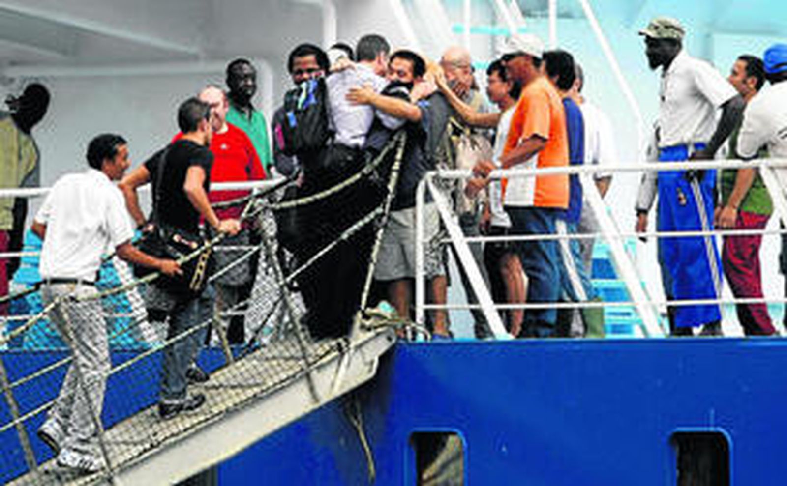 Nada más descender del barco, se vivió el momento más intenso y emotivo al fundirse entre abrazos y algunas lágrimas los marineros y sus familiares.