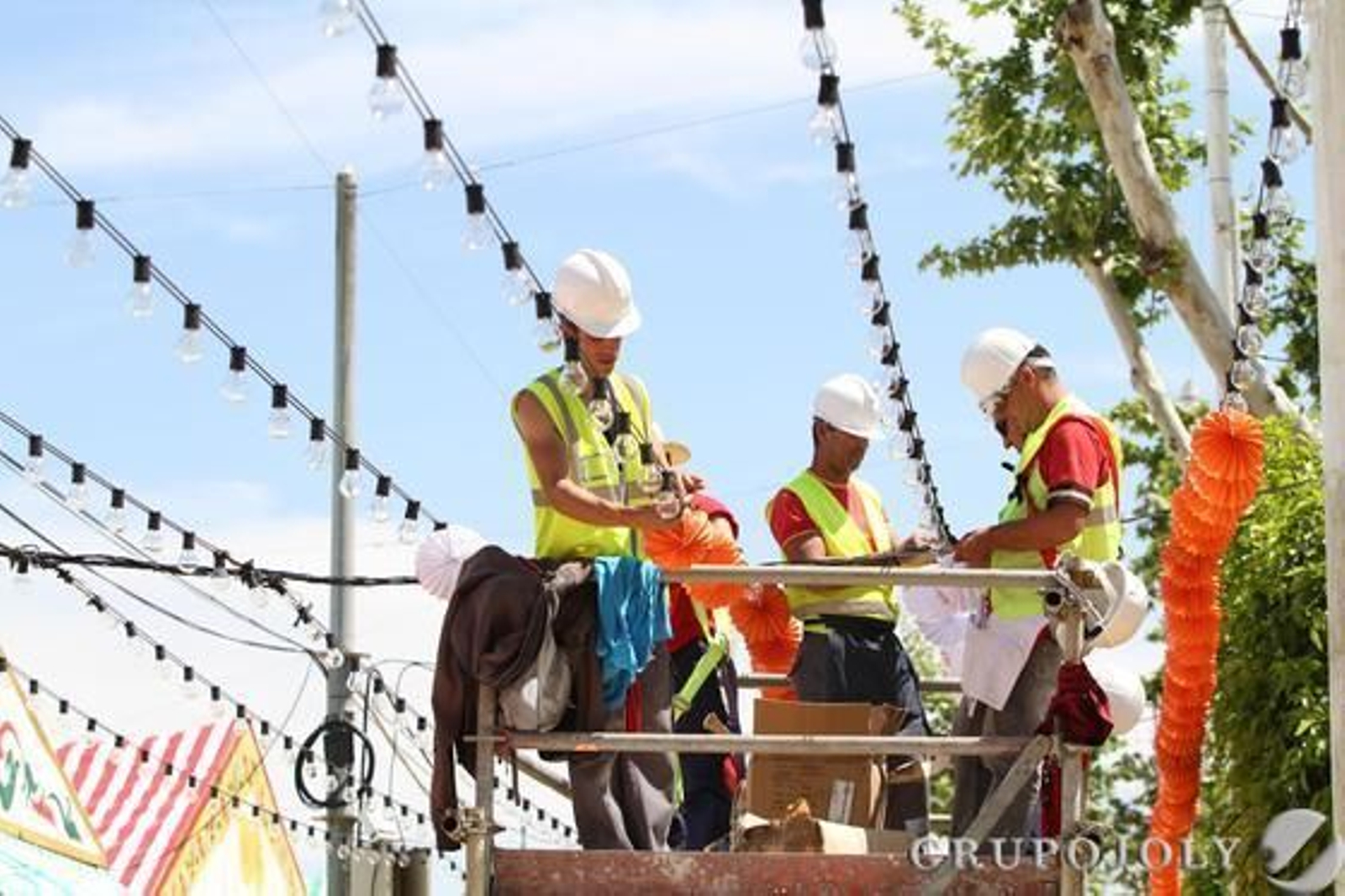 Demanda eléctrica. La solicitud diaria de energia en el real equivale a una ciudad con 50.000 habitantes. La demanda diaria de energía en el real equivale a una ciudad de 50.000 habitantes. Endesa pone en marcha un dispositivo especial que supera las 35 personas en retén permanente las 24 horas de cada uno de los seis días, por si fuera necesaria su intervención en cualquier momento. Propiamente en el recinto ferial se concentran 31,5 kilómetros de líneas subterráneas (22,5 de baja tensión y 9 de media tensión), a los que hay que sumar otros siete kilómetros de conducciones aéreas de baja tensión -las correspondientes a las atracciones de la Calle del infierno-, 19 centros de distribución y 43 transformadores, todo ello de propiedad municipal, que completan los 36,84 megavatios de potencia instalada con que cuenta este espacio. Cuando la semana de Feria termine, se habrán llegado previsiblemente a puntas de potencia de energía eléctrica que podrían acercarse a los 20 megavatios.