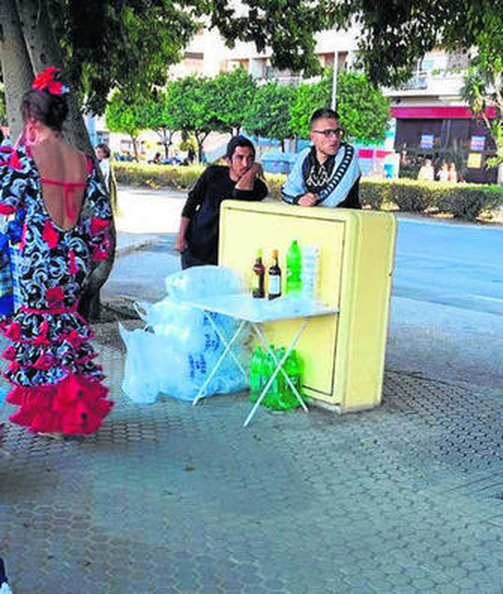 Mientras la Policía Local se afana en luchar contra la botellona dentro del recinto ferial, cada día son más los grupos de vendedores ambulantes que ofrecen lotes y bebidas alcohólicas en tenderetes ilegales en mitad del real. Cada noche se pueden ver en la calle del infierno, con una mesa plegable, unas bolsas de hielo y distintas bebidas y refrescos. Ayer, hasta tenían sus puestos montados a plena luz del día, en la entrada de la Feria junto a la parada de los autobuses de Tussam.