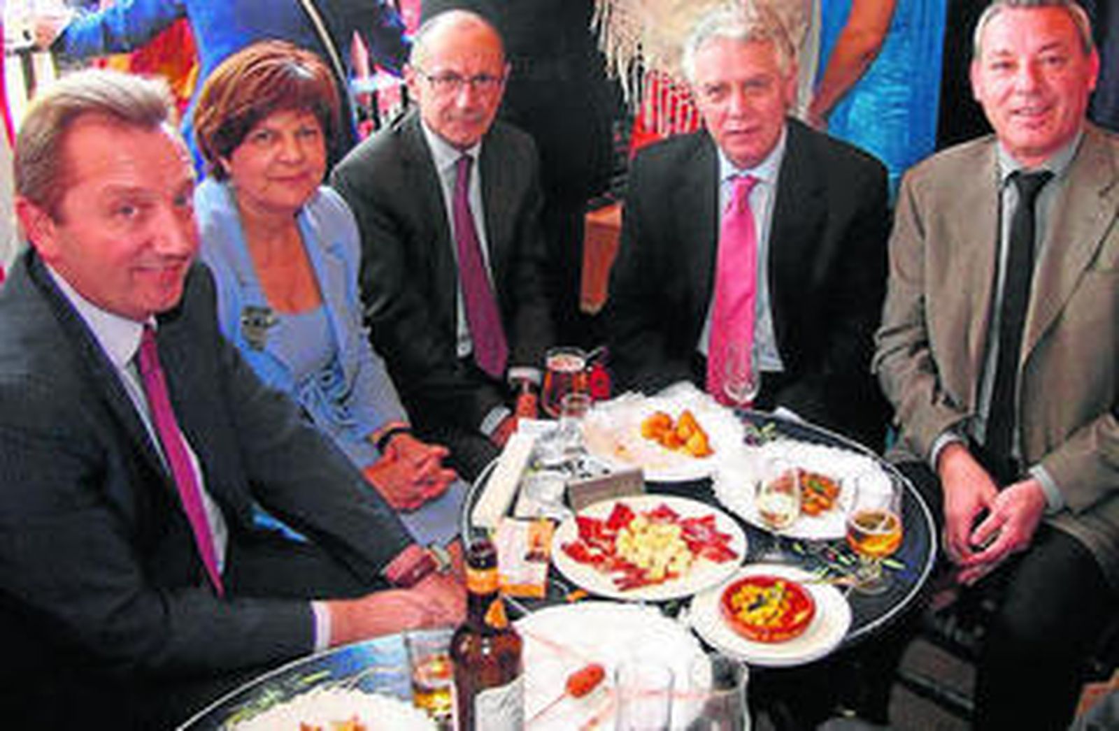 El PP tampoco faltó a la cita, pero fue más tempranero. El alcalde de Sevilla, Juan Ignacio Zoido, estuvo departiendo con varios de su equipo, como Beltrán Pérez. También hubo representación de la Guardia Civil, con la presencia del general Laurentino Ceña; del Betis, con el presidente Miguel Guillén, Rafael Gordillo y el entrenador Pepe Mel; y una amplísima presencia del personal de los medios de comunicación. También hubo artistas como Los del Río y modelos como Raquel Revuelta.