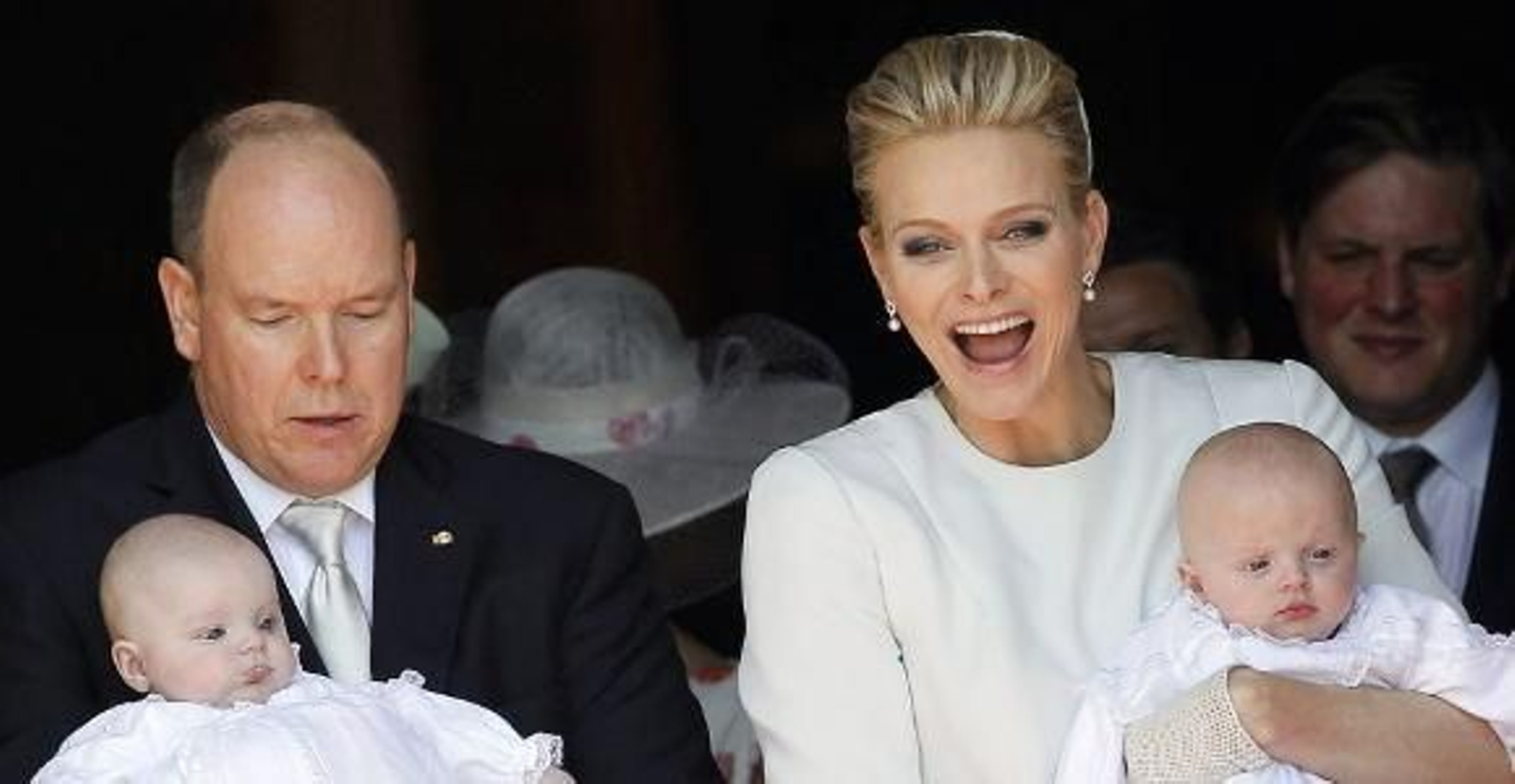Jaime y Gabriela son los primeros hijos en común de la pareja, que se casó en julio de 2011, y el tercer y cuarto vástago para el soberano, que tiene ya otros dos hijos reconocidos y nacidos fuera de su matrimonio, por lo que carecen de derechos sucesorios. Al término de la ceremonia, y tras la foto de familia, Alberto II y Charlene se dirigieron a pie hasta el Palacio, recorrido en el que recibieron las felicitaciones de residentes y turistas, mientras que los pequeños fueron acompañados en coche por sus niñeras hasta la residencia.
