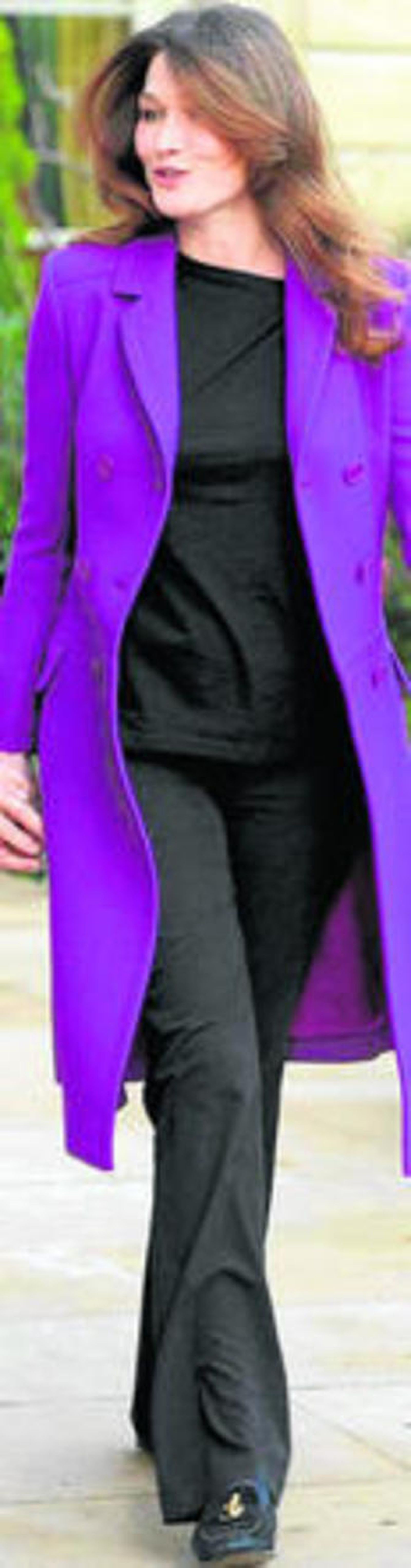 Para recibir, junto a su marido, al presidente de Costa de Marfil y su esposa, Carla no arriesgó pero ganó con un conjunto exquisitamente informal compuesto por pantalón y jersey de punto negro combinado, con mucho acierto, con un elegante abrigo color púrpura y la melena al viento, un peinado propio de un acto de tarde. Para la cena, volvió a confiar en un modelo total black, el que mejor disimula los kilos de más propios de una mujer que acaba de dar a luz. En esta ocasión cambió el pantalón por un vestido de manga francesa por encima de la rodilla que lució con medias tupidas y unos zapatos Christian Louboutin de poco tacón. Completó su look con un favorecedor recogido y unos pendientes largos como único complemento. Carla compaginará sus compromisos con las necesidades de su bebé, al que cuida personalmente.