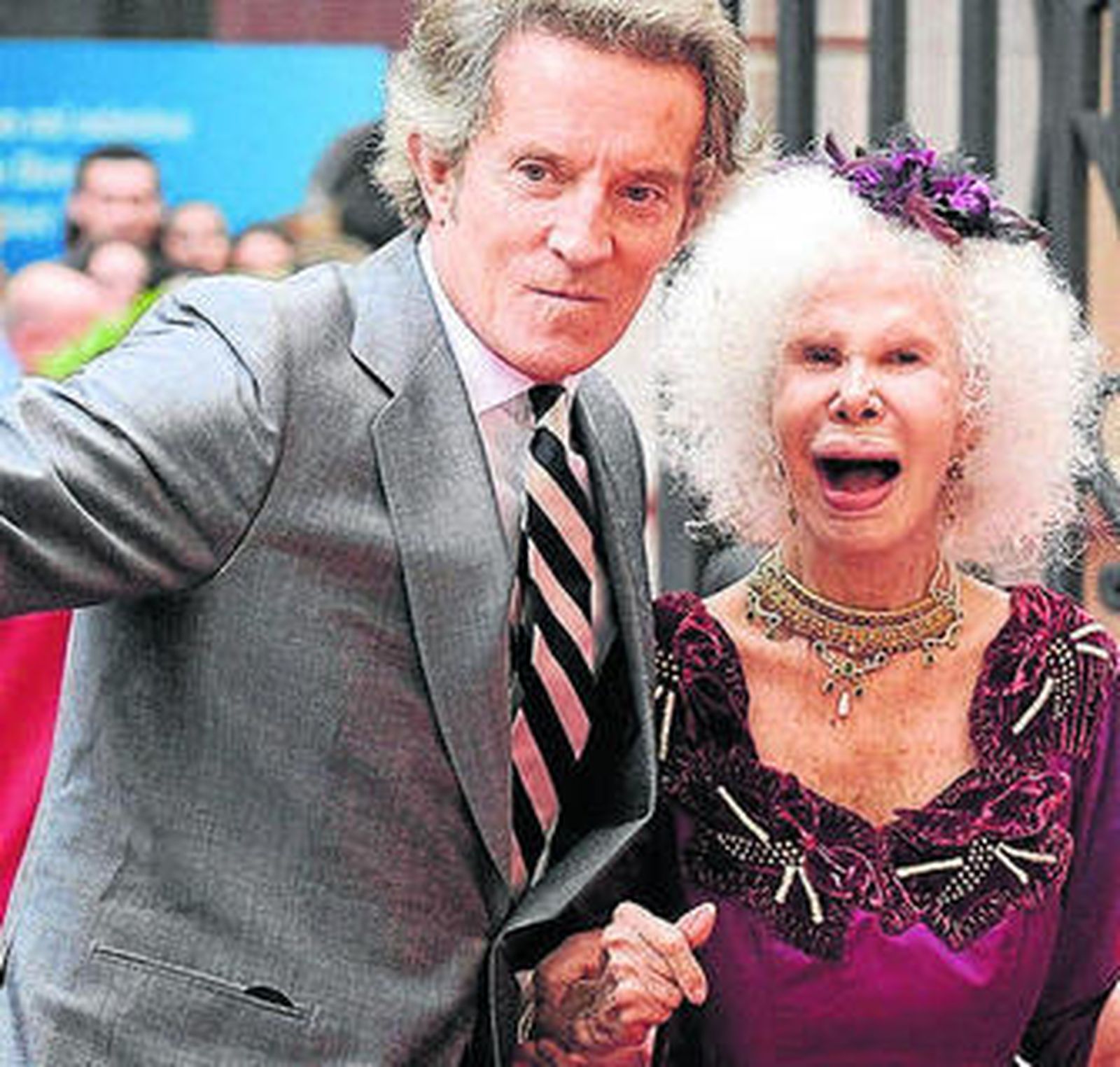 La duquesa de Alba, quien coincidió en el enlace con el hermano de su exyerno, Cayetano Rivera, iba muy guapa con un vestido morado y un tocado muy de su estilo en el mismo tono. A su llegada, tras el correspondiente paseíllo por la alfombra roja, el matrimonio no dudó en posar sonriente para la prensa.