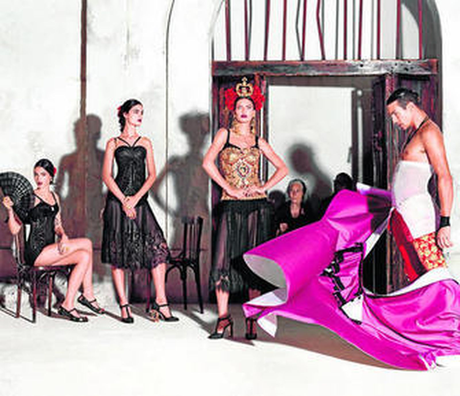 En esta singular fusión, en la que vuelven a tener su dosis de protagonismo las signoras enlutadas que tanto gustan a la firma italiana, intervienen como principales actores la modelo Blanca Padilla y el torero José Mari Manzanares. Padilla, que sigue su buena racha tras desfilar el pasado mes de diciembre para Victoria Secret, aparece en su primera gran campaña publicitaria luciendo su lado más sexy entre brocados, volantes y lunares. Por su parte, Jose Mari Manzanares posa cómodo con un traje de luces a medio poner, dejando parte de su torso al descubierto y dando lucidos capotazos. Junto a ellos también se encuentra el modelo español Xavier Serrano, conocido por sus trabajos con Givenchy, Armani o Mango. Pero no todos los modelos que participan en el anuncio de la nueva colección de Dolce&Gabbana tienen raíces hispanas. Junto a los ya mencionados participan la top italiana Bianca Balti, así como Vitoria Ceretti o Irina Sharipova.