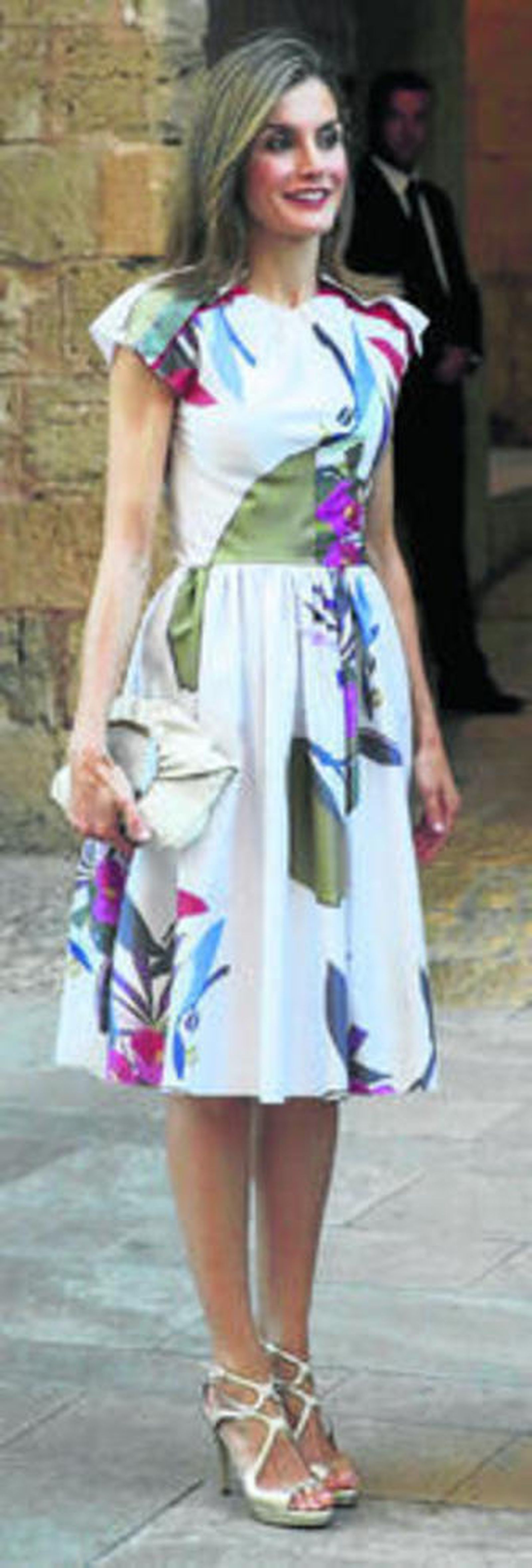 Este vestido de Juan Vidal, que ha debutado por la puerta grande en el ropero de doña Letizia, fue el único estreno de la Reina para la noche del domingo en Mallorca. Complementó su look con unas de sus sandalias de Magrit favoritas, en color plata y de altísimo tacón, que ya le hemos visto en infinidad de ocasiones, y un clutch de la firma Malababa, que tampoco es la primera vez que lo saca del vestidor. Como joyas, la esposa de Felipe VI se puso unos coloridos pendientes de Coolook elaborados con labradoritas, ágatas y citrinos. La consorte es una clienta muy fiel de esta marca fundada por Mar Aldeguer, toda una experta en "fusionar su pasión por las piedras con el talento a la hora de realizar diseños innovadores y vanguardistas pensados para la mujer de hoy", tal y como dice su página web, y que también ha enamorado a otras muchas celebs patrias, en especial a las féminas de la familia Preysler.