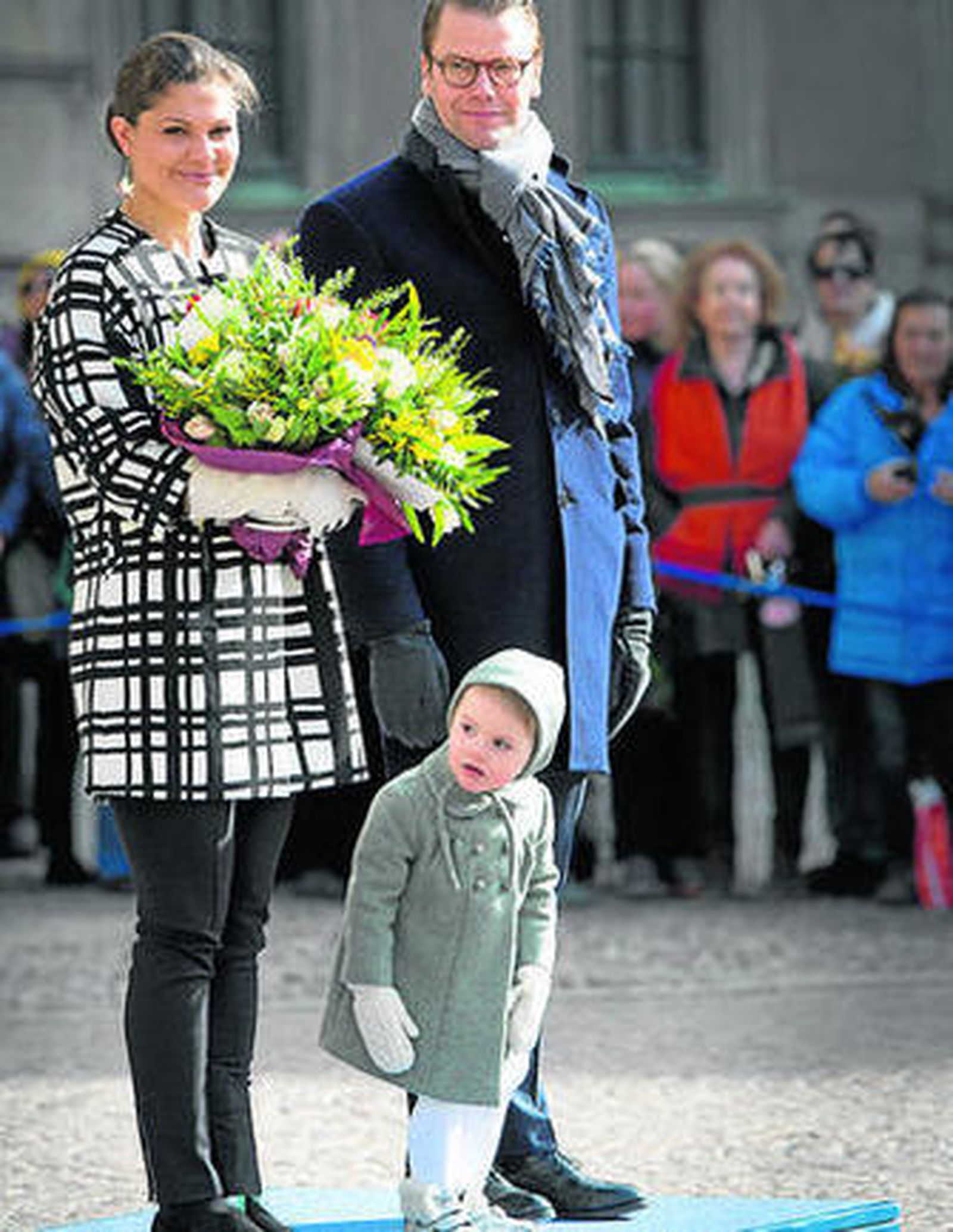 Era el santo de la princesa Victoria de Suecia, pero su hija Estela, de tan sólo dos añitos, acaparó todas las miradas en los actos celebrados en Estocolmo con motivo de la onomástica de le heredera. Vestida con un abriguito gris jaspeado con sombrero a juego y muy bien abrigada con unos guantes y leotardos de lana marfil y unas botitas forradas de piel, la pequeña asistió junto a sus padres al tradicional desfile y se convirtió en el centro de atención por su curiosidad y simpatía.