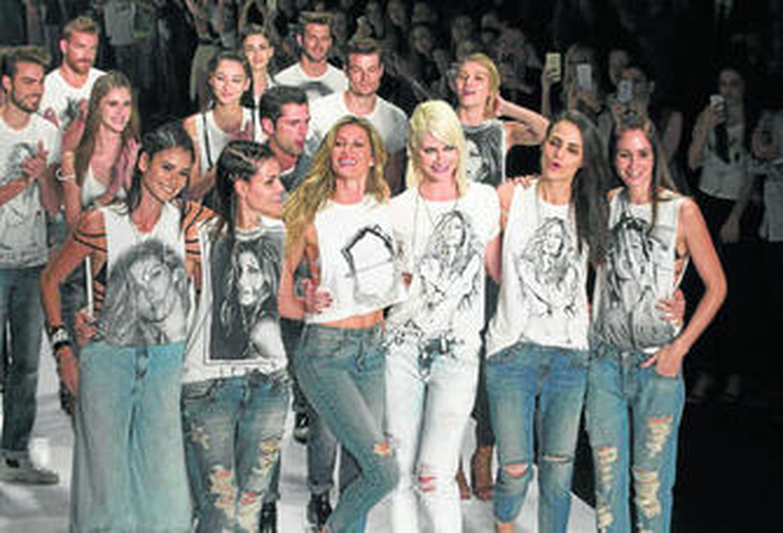 A pesar de que en su último desfile Bündchen entró con paso firme en la pasarela -al ritmo de 'Flower Punk' de Frank Zappa- la emoción terminó ganándole terreno y mostró a una Gisele emocionada que no pudo contener las lágrimas al cerrar el desfile. No era para menos, ya que tanto el público (en el que se encontraban tanto sus familiares como sus amigos más cercanos) como sus compañeros de profesión (que desfilaron con camisetas serigrafiadas con el rostro de la brasileña) demostraron su reconocimiento a la top con sus interminables aplausos y ovaciones. Modelos veteranas como Ana Claudia Michels, Fernanda Tavares, Caroline Ribeiro o Luciana Kurs no quisieron perderse el último desfile de Bündchen y fueron testigos directos de su despedida desde la pasarela.