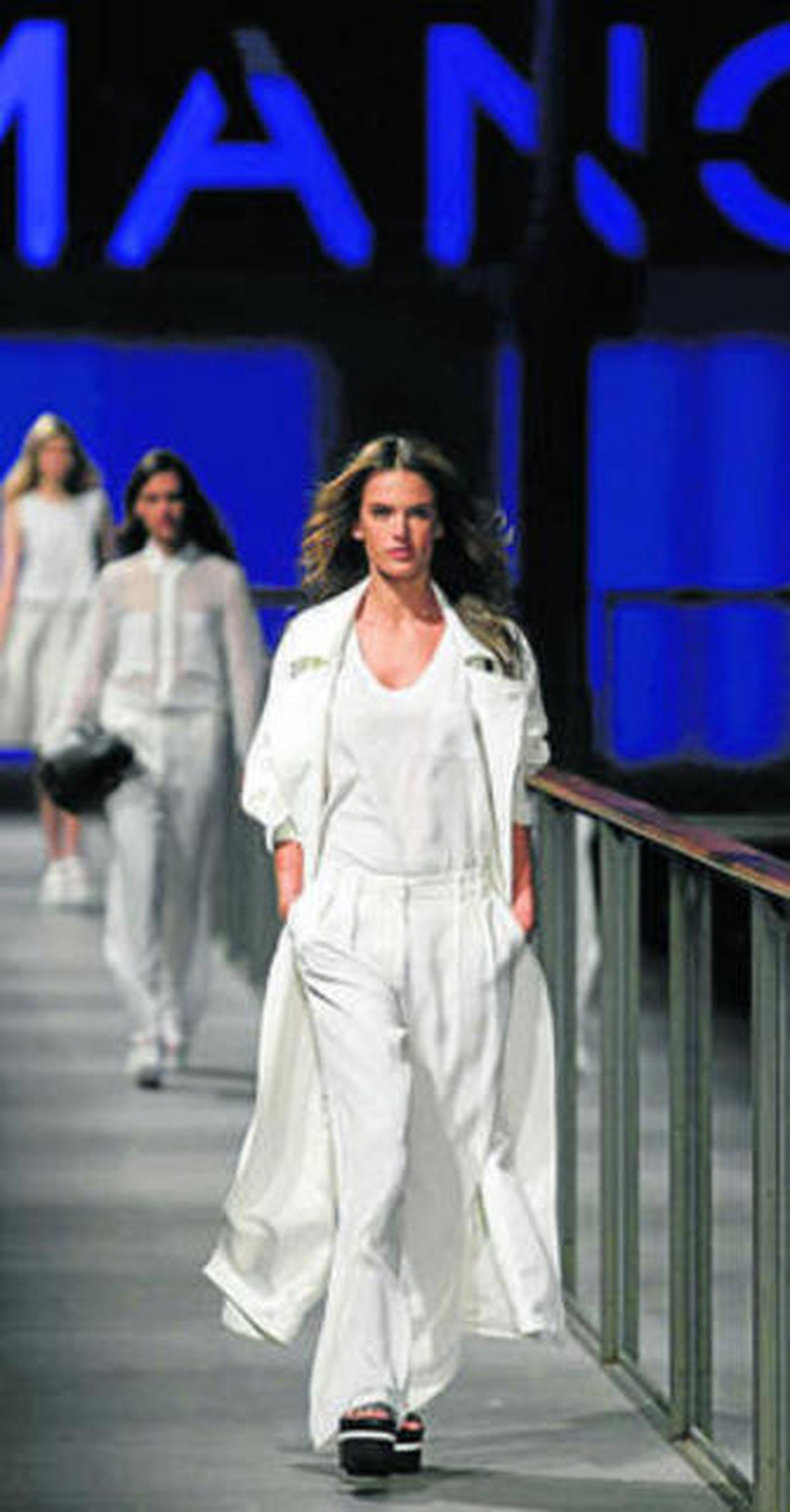 Los estilos que Mango sugiere para la mujer hacen hincapié en ropa minimalista, con un especial énfasis en los detalles, unas tendencias que resaltan la individualidad de la época y el gusto por la simplicidad y la comodidad. Junto con Ambrosio desfilaron Dalianah Arekion, Anna Martynova, Marina Nery, Erjona Alam, Mariana Santana y Lieke van Houten, que lucieron vestidos de popelín o plisados, junto a materiales nuevos como el neopreno y con mezcla de texturas en tonos en los que primó el tándem blanco y negro.