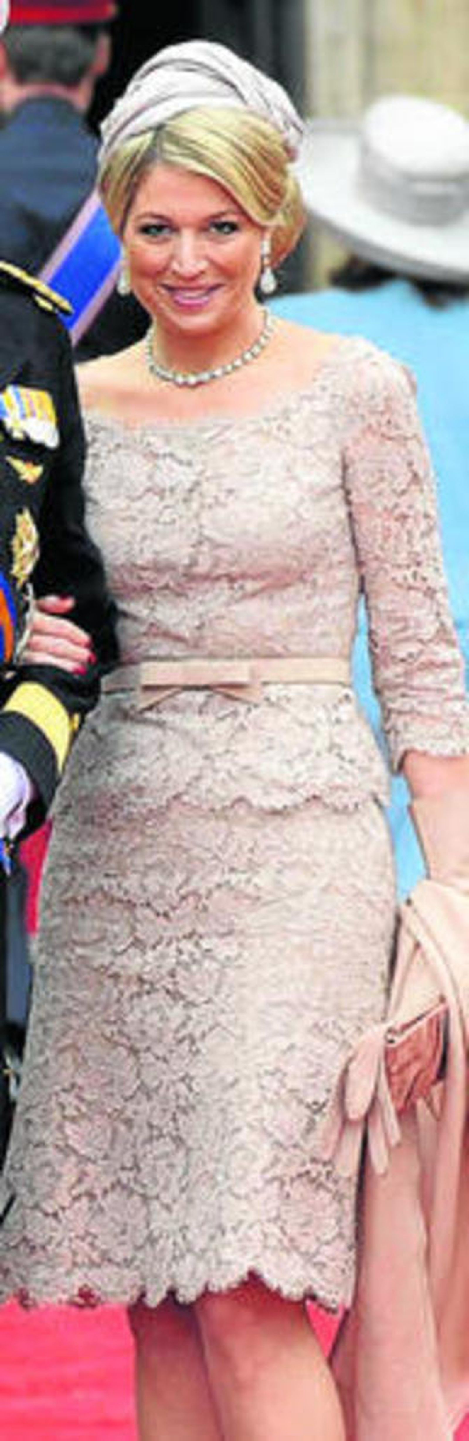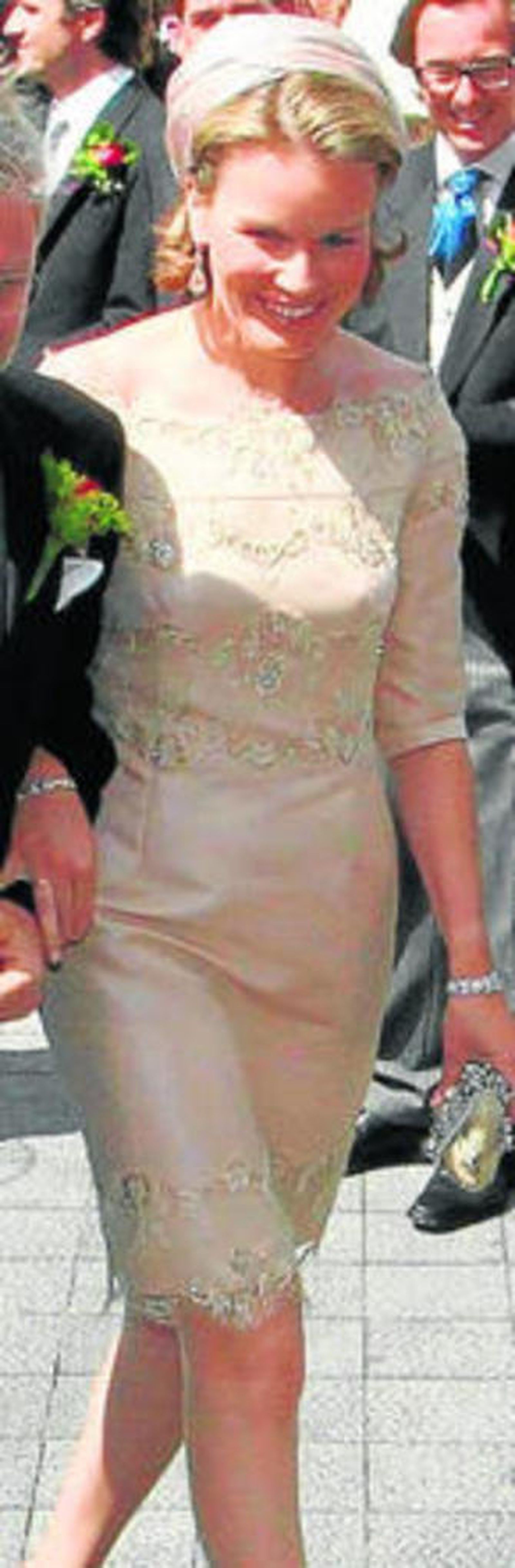 No es el mismo vestido, pero casi. La princesa Matilde de Bélgica lució en la boda de su hermana, la condesa Helene d´Udekem d´Acoz, un modelo de dos piezas en color nude y encaje con tocado a modo de gorrito a juego que, más que inspirarse, parece completamente basado en el look de otro miembro de la realeza, Máxima de Holanda, en la boda del príncipe Guillermo de Inglaterra. Aunque con menos encaje, el color, el escote barco y el corte coinciden; y lo que es más significativo: el sombrero, evocando a los de los años 60, parecía idéntico. ¿Se lo habrá prestado?