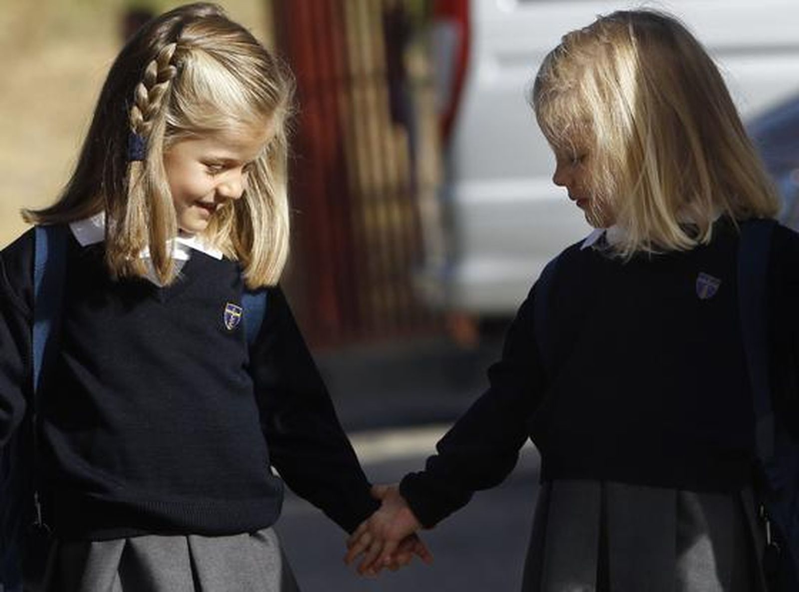 Las niñas iban vestidas con el uniforme del colegio, con falda tableada, jersey azul marino y camisa azul claro, y ambas con las mismas mochilas, también de color azul.