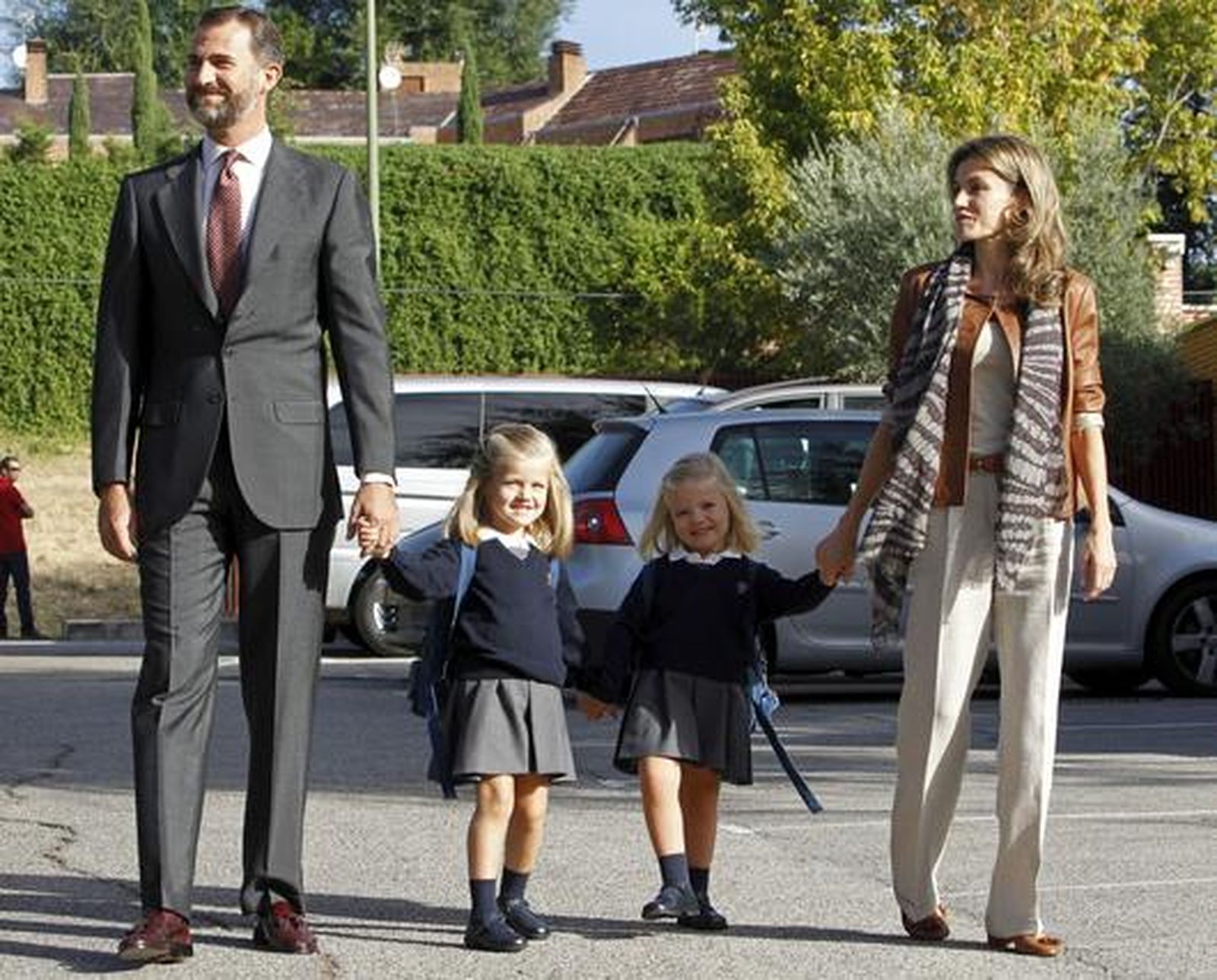 Los periodistas han preguntado a la pequeña de las dos hermanas qué tal estaba viviendo sus primeros días de clase, pero Sofía estaba muy tímida y no ha respondido a ninguna cuestión.