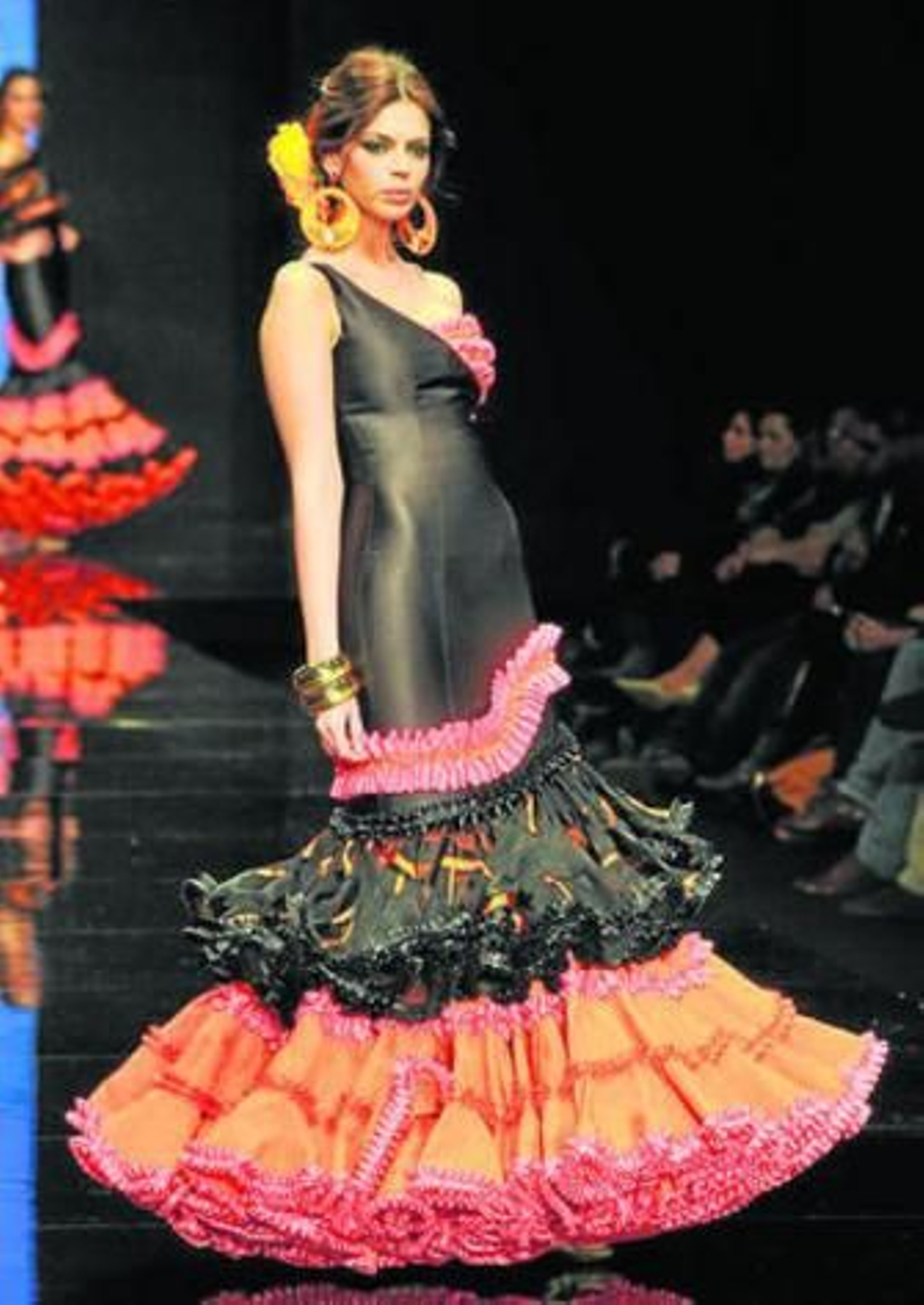 Por último, Aurora Gaviño hizo despertar a los sentidos haciéndonos ver aquello que transmitimos en función del tono del traje por el que nos decantamos. Una especie de colorterapia a lo flamenco que se recibió con cálidos aplausos a sus tachuelas, cadenas y tiras de pequeños espejos o a esas maravillosas toreras de terciopelo que realzaban aún más unos cuerpos ceñidos -muchos de ellos con escotes redondeados- y donde no podríamos encontrar una mejor técnica para sobreponer los tejidos. Del negro al coral, del rojo al verde, del amarillo al naranja, Gaviño es una explosión de geniales ideas que no dejan atrás unas ideales gargantillas, collares, pendientes y camafeos con flecos salidos, igual que el resto, de la imaginación de esta sevillana que, aun en sus excesos, derrocha arte puro.