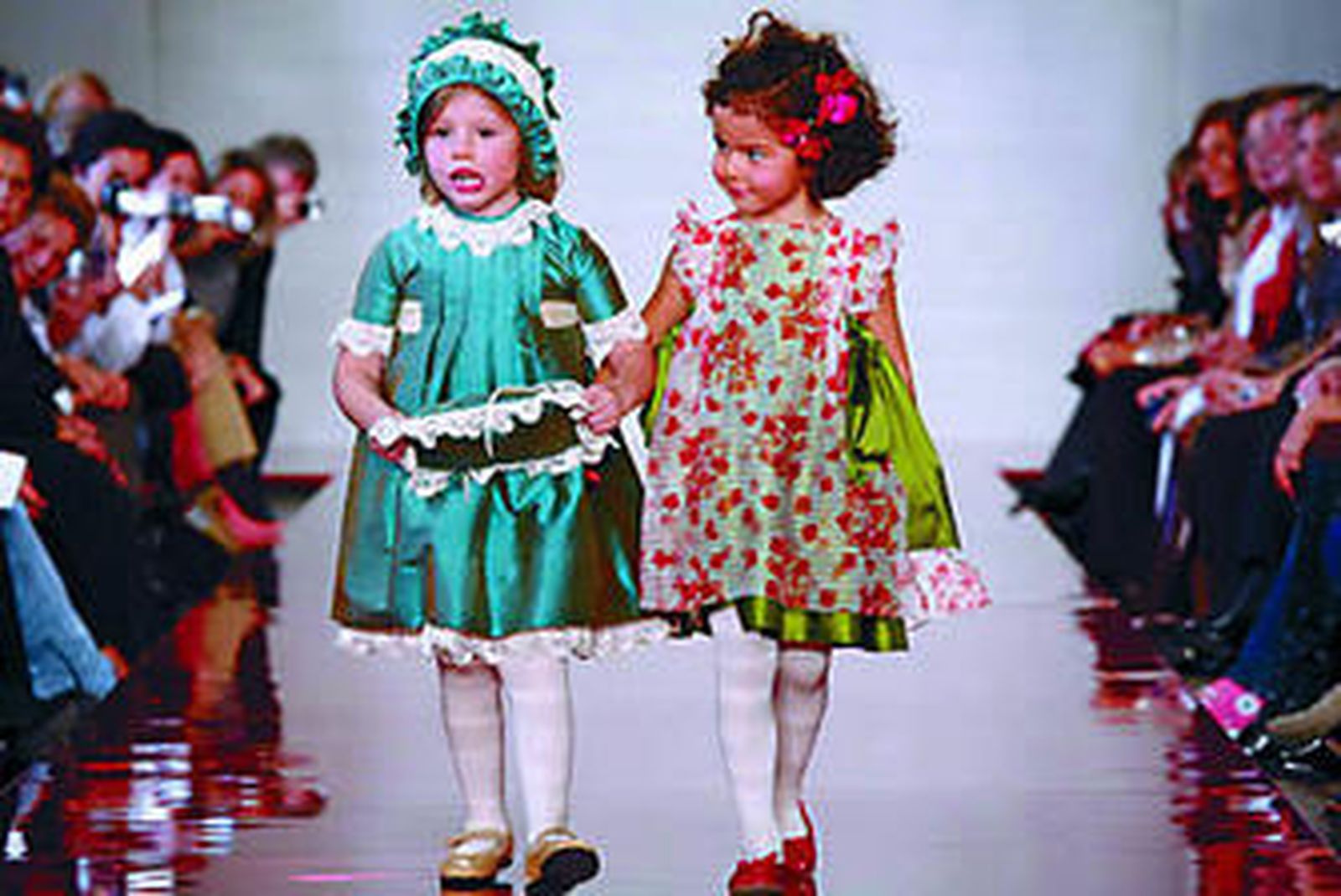 Por un lado, Beatriz Montero inició su puesta en escena con conjuntos de mariposas estampadas donde los niños se vestían haciendo juego con las niñas. Faldas que jugaban con retales de distintos colores y abriguitos en blanco con botones en las mangas y flores de cintas en el pelo como complemento, algunas otras características de la diseñadora. Paqui Barroso, por su parte, se centró en las ceremonias y, pensando tanto en la comunión como en las damas de honor y pajes para las bodas, ideó unas líneas sencillas en sedas, rasos y tejidos perforados que, con encajes rematando las terminaciones y jaretitas adornando blusas, recrearon un mágico universo propio de ocasiones señaladas. Por último, Kobez, celebrando su medio siglo de trayectoria, demostró su maestría en el sector adaptando las tendencias de los mayores a los más pequeños y reivindicando su derecho a ir con lo que dictamina cada temporada a través de pañuelos en la cabeza, looks marineros o cuellos mao para los hombrecitos de cada casa.