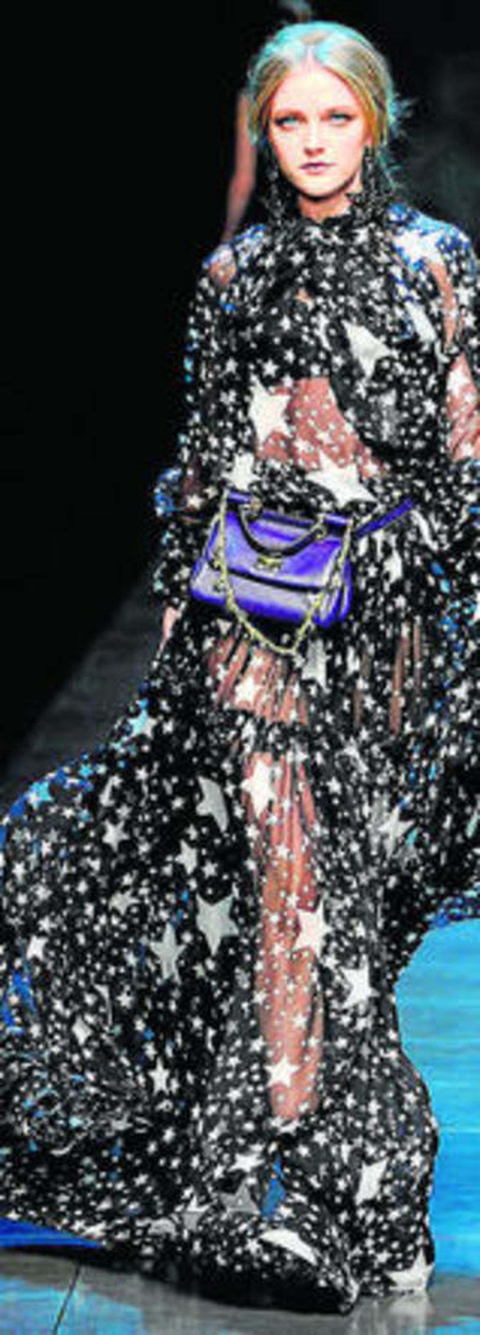 Crisis, qué idea tan desgraciadamente arraigada en la mente de la mayoría. Seguro que todos escuchamos tan vilipendiada palabra y pensamos en la desaceleración económica o los problemas financieros. Afortunadamente en este caso la palabra crisis no hace referencia a la coyuntura económica. Todo lo contrario, y así lo pudo constatar el dúo creativo Dolce & Gabbana, que tras haber pasado una crisis creativa que no económica, desde hace varias temporadas ha vuelto con colecciones irresistibles, que reivindican sus raíces y se convierten en claves de la temporada. Es el caso de la propuesta de esta pareja para el otoño invierno de 2011, con siluetas e ideas muy similares a la de anteriores temporadas, de repente ¡Se hizo la luz! Y un sinfín de estrellas en color blanco estampaban vaporosas faldas, maravillosas blusas y etéreos vestidos. Un juego entre el masculino y el femenino, la esencia de las rockstarst, mucha purpurina y las estrellas como principal protagonista.