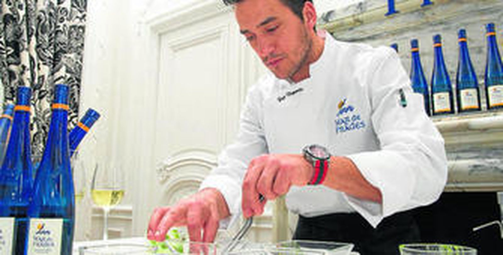 Fue uno de los cocineros españoles más jóvenes en lograr su primera estrella Michelin. Yayo Daporta (Cambados, Pontevedra, 1975) puede presumir de haber forjado su resturante, con su nombre, en su ciudad natal. Esta semana presentó en Madrid la nueva añada del albariño Mar de Frades con un menú inspirado en el percebe. "Ambos transmiten el equilibrio que nos transporta al mar, al olor a sal y a piedra mojada". El menú: tartar de percebes, percebes al vapor, consomé de moluscos, ce viche, merluza de bajura al vapor con percebes y cremoso de chocolate.