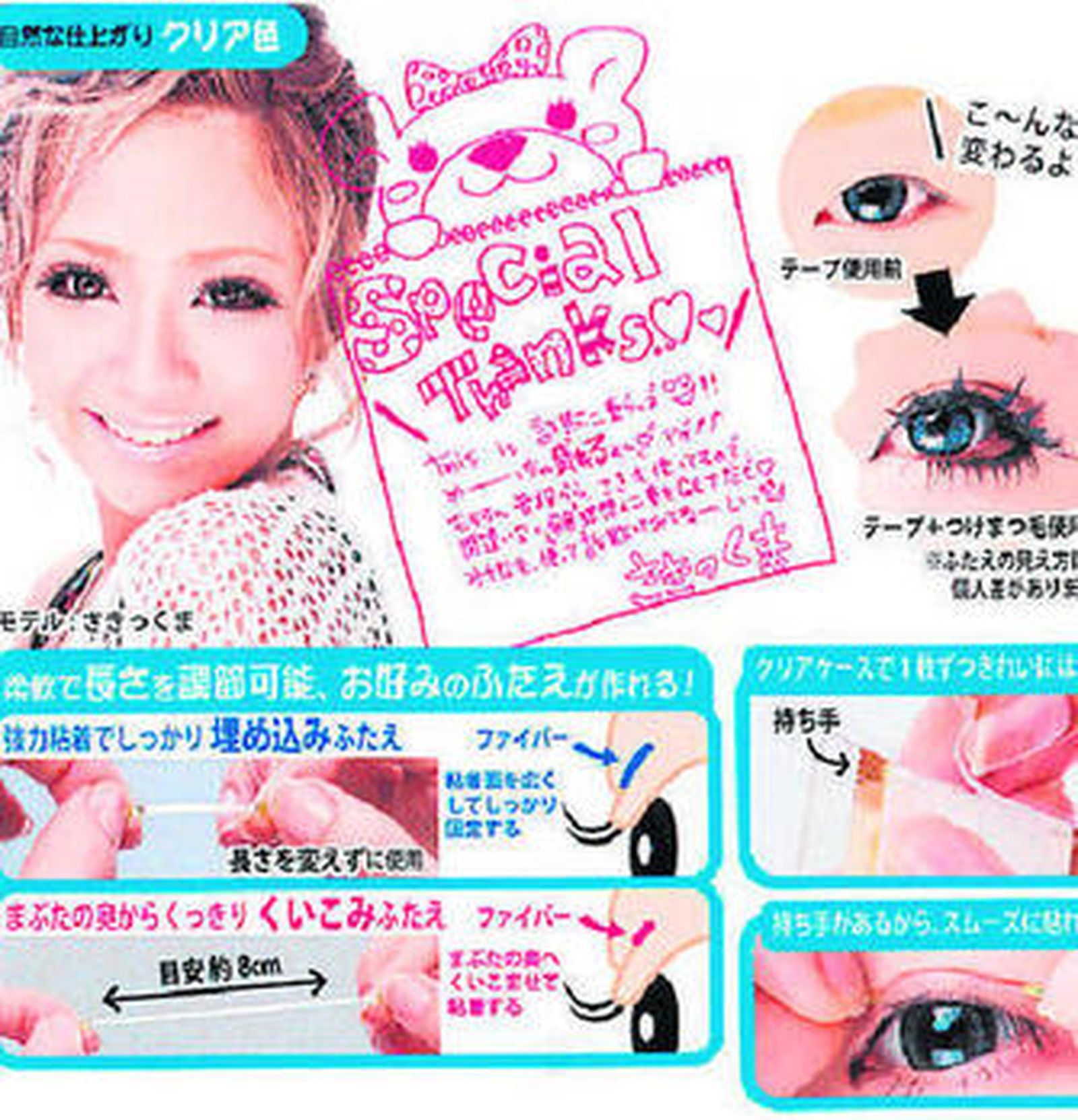 Quizá el más común y que sí es relativamente habitual encontrar son las sombras de ojos adhesivas, perfectas para aquellas poco mañosas con los pinceles: simplemente se coloca la pegatina sobre el párpado y, al retirarla, el maquillaje quedará sobre la piel. Pero si se habla de adhesivos para ojos, lo más curioso son las pegatinas de párpados, ideadas por las jóvenes japonesas para hacer parecer su ojo más grande. Se pegan en el centro del párpado móvil con el ojo cerrado para que, al abrirlo, se forme ese pequeño pliegue que tanto desean; algo que también pueden conseguir aplicando directamente pegamento facial y ayudándose de unas pequeñas pinzas que vienen en el kit de venta.