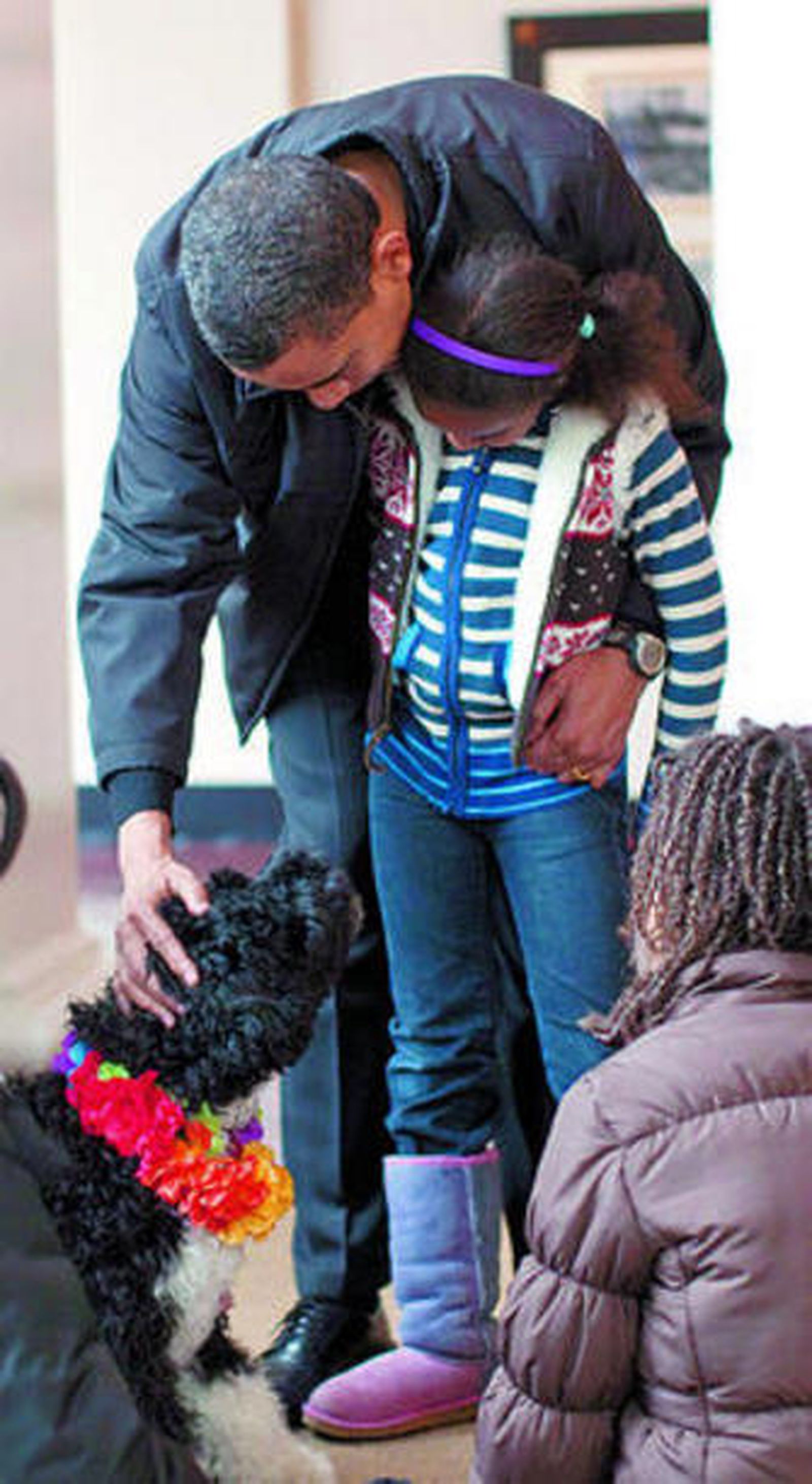 El regalo viene de parte del senador Edwar Kennedy, que desde que tuvo conocimiento de la promesa hizo campaña para convencerle de que el perro de agua era la raza ideal para ellos. De hecho él tiene tres de agua y Bo procede del mismo criador que los suyos, en concreto la perrita de Malia de 10 años y Sasha de 7, fue devuelta al criador por su anterior dueño. Además la raza escogida tiene la peculiaridad de que no daña a las alergias de Malia, la hija mayor, ya que los perros de agua son hipoalergénicos.