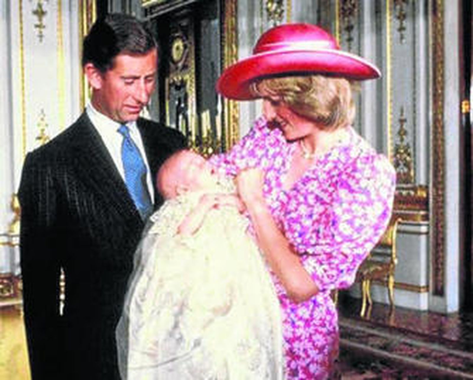 El padre del duque de Cambridge, el príncipe Carlos, fue bautizado en el Salón de Música del Palacio de Buckingham el 15 de diciembre de 1948. Sus padrinos fueron el rey Jorge VI, la reina María, la princesa Margarita, la marquesa de Milford Haven, David Bowes-Lyon, Lady Brabourne, el rey Haakon VII de Noruega y el príncipe Jorge de Grecia. Una ceremonia más pomposa que la de su madre, la actual reina Isabel II, que tuvo lugar el 29 de mayo de 1926. Recibió el sagrado sacramento en la capilla privada del Palacio de Buckingham, que fue destruida durante los bombardeos de Londres, en la Segunda Guerra Mundial.